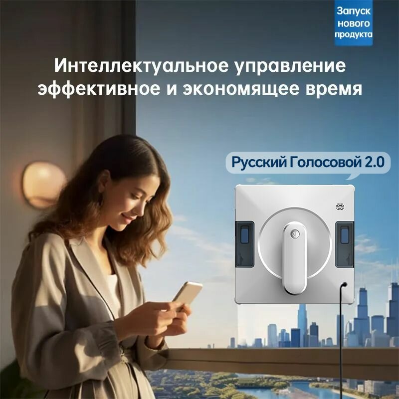 Робот для мойки окон Голосовое напоминание, автоматическое трехстороннее распыление водыYW500, белый интересное: