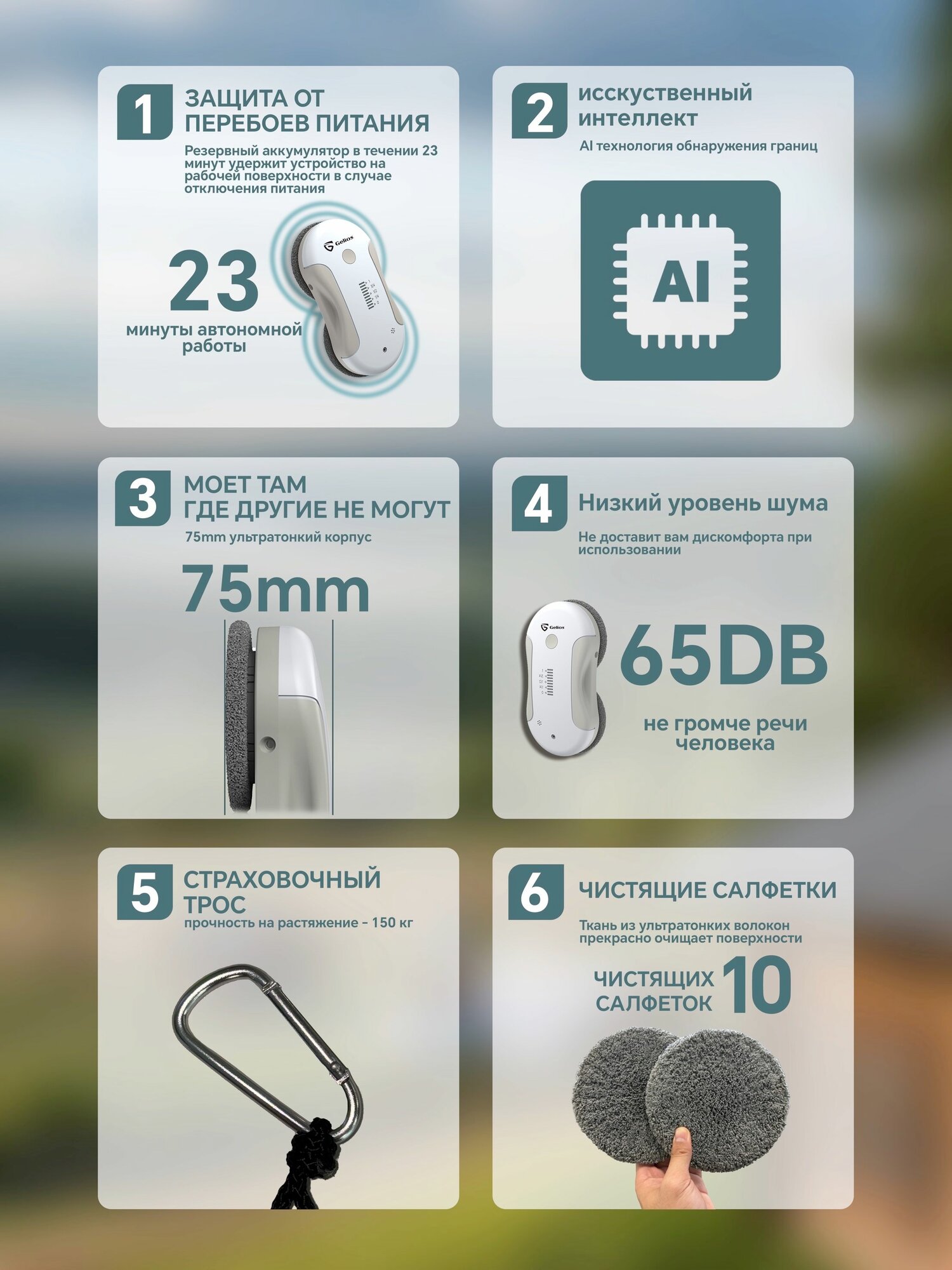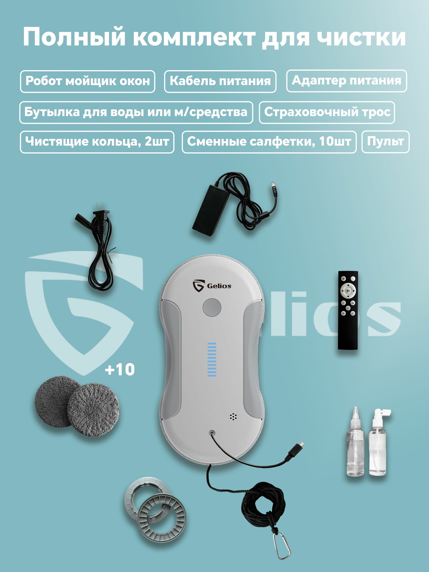 Умный робот-мойщик окон Двойное распыление, автоочистка, 10 сменных салфеток из микрофибры, Gelios YW163 интересное: