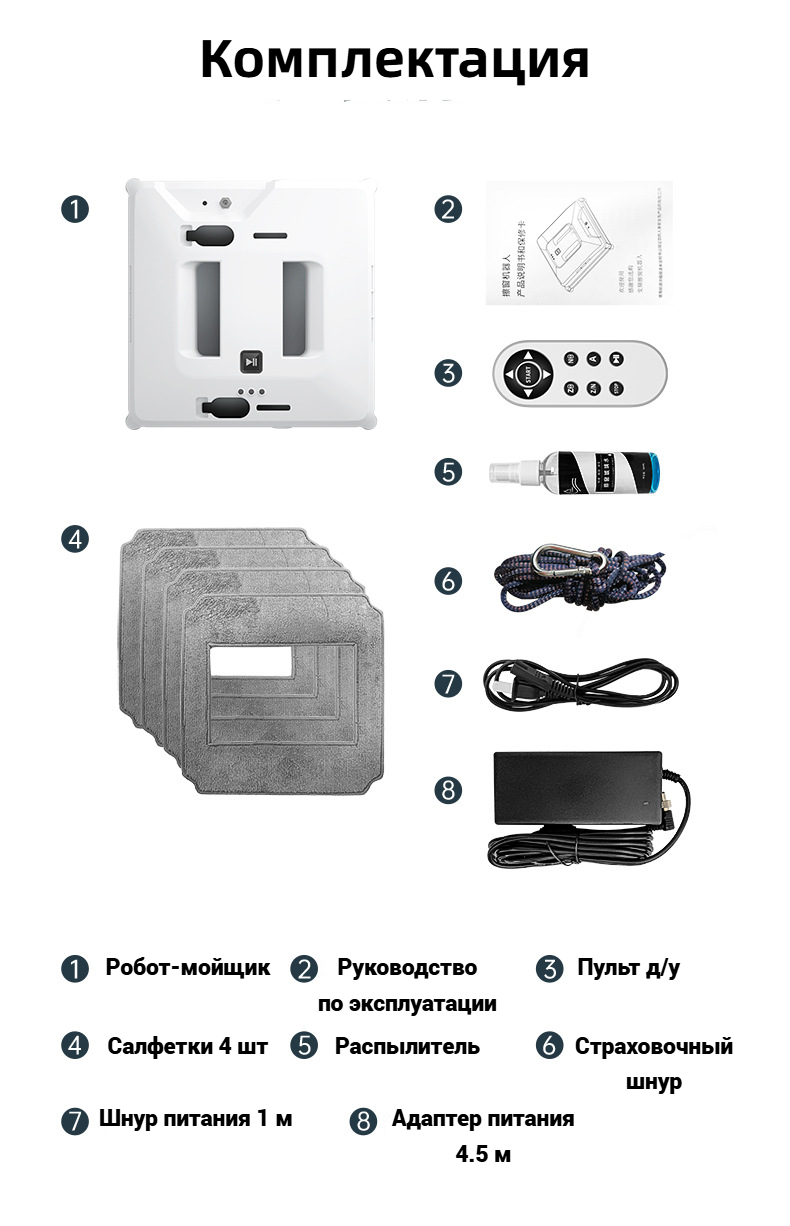 Робот для мытья окон Pultu T48 с распылителем, 3000 Pa, 80 Вт, EU, белый интересное: