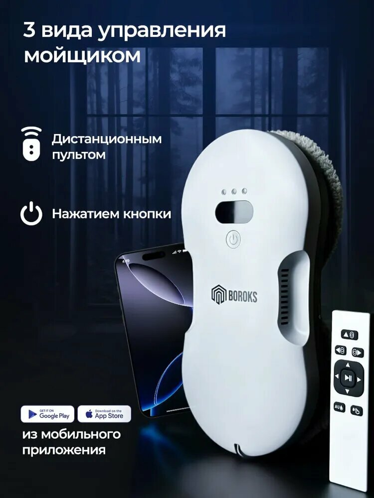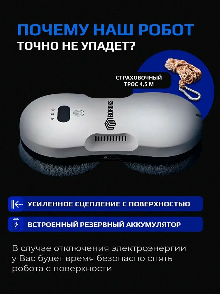 BOROKS Робот для мойки окон Робот мойщик окон, мощный пылесос стеклоочиститель , для сухой и влажной уборки, серый интересное: