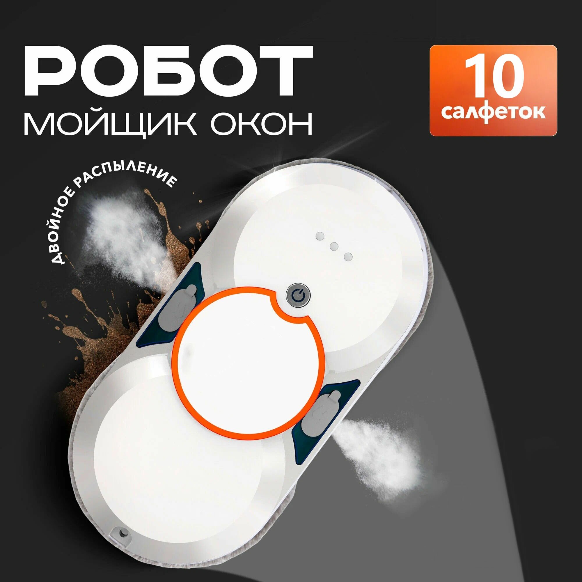 Купить Робот-мойщик окон со сменными салфетками 10 шт, Большой резервуар для воды объемом 60 мл, 2 форсунки для воды