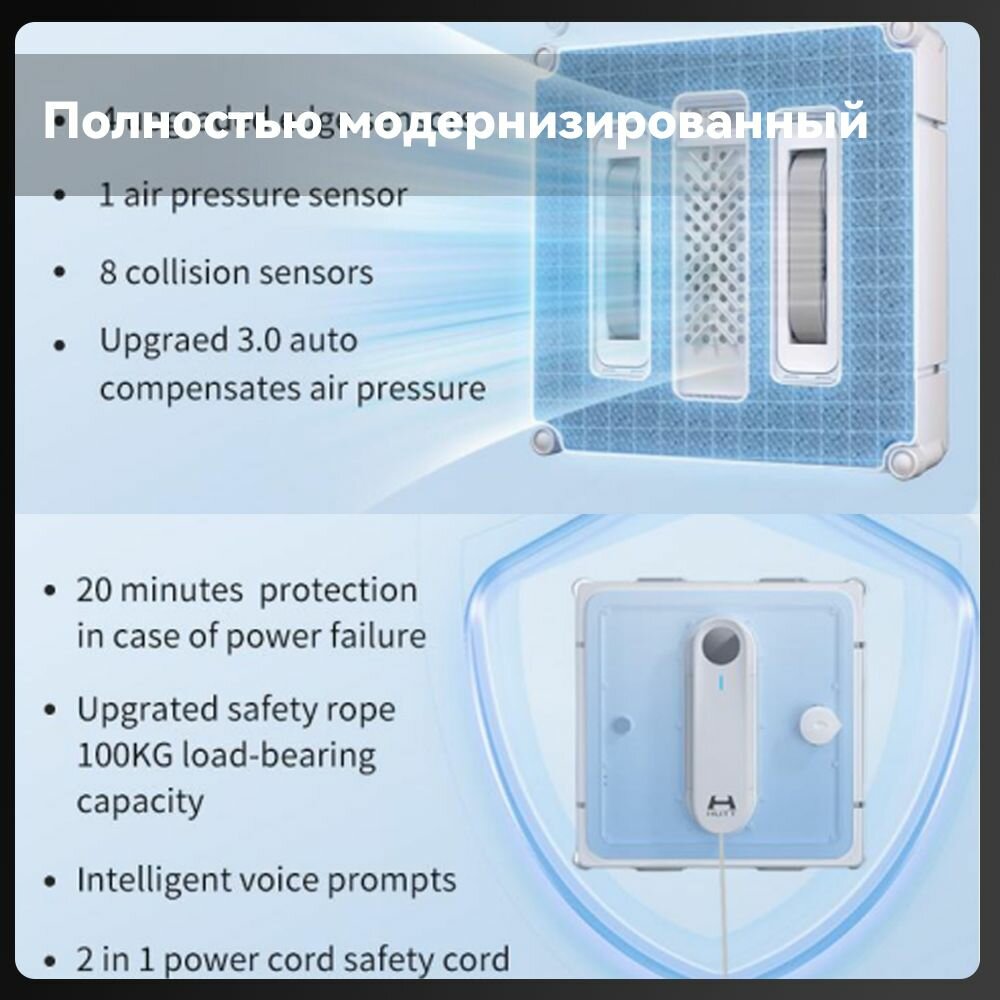 Высококлассным преобразованием частоты Робот мойщик окон с распылением HUTT W9 интересное: