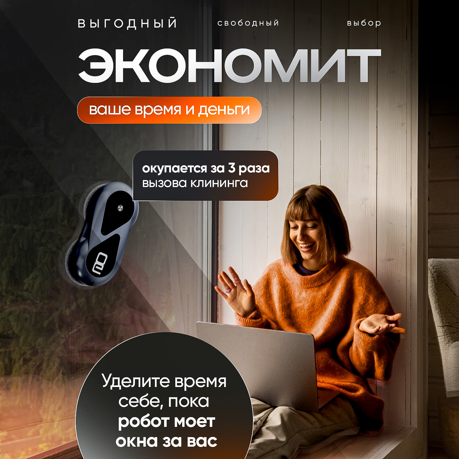 Робот-мойщик для окон Smart Black, с двойным распылением, 18 салфеток, цвет черный интересное: