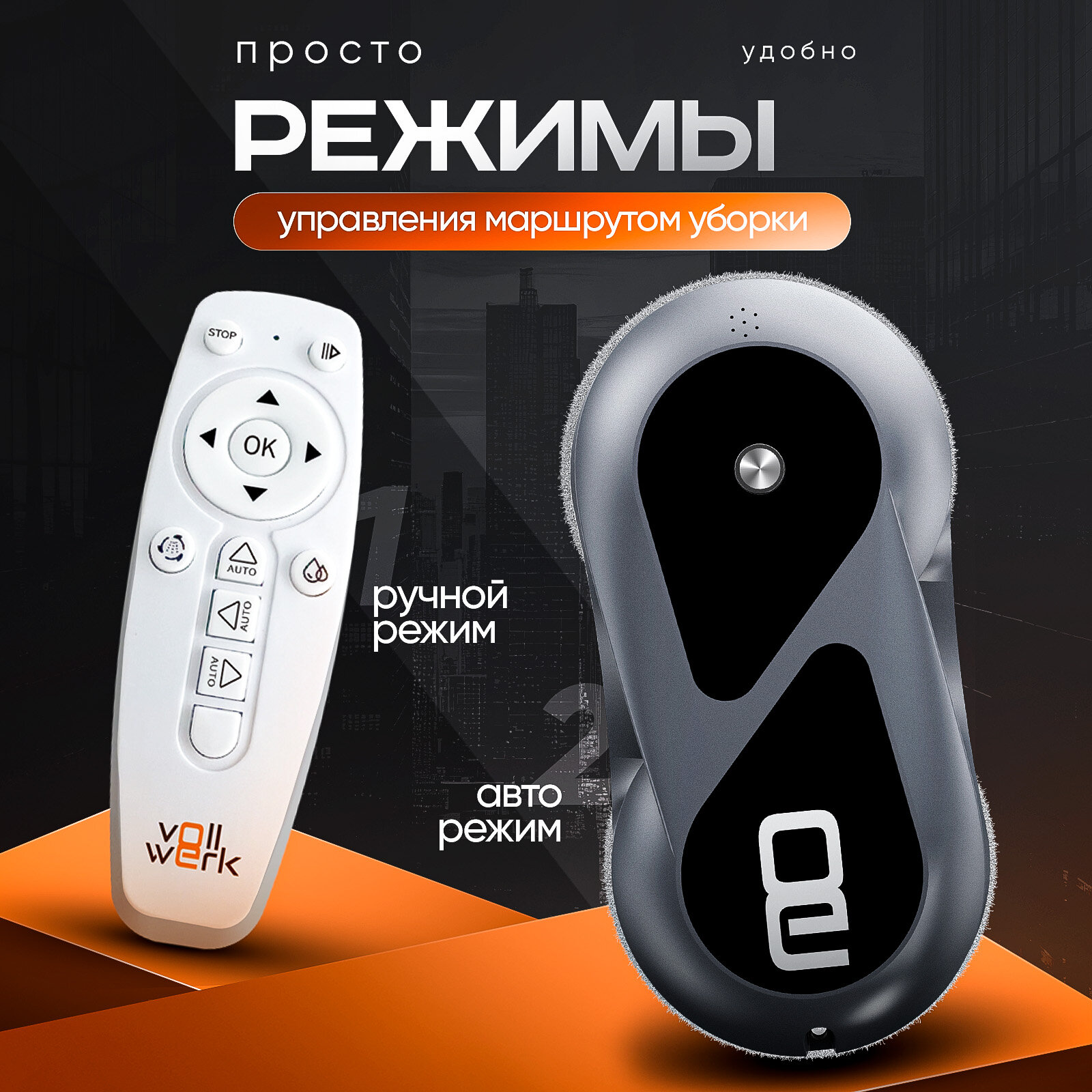 Робот-мойщик для окон Vollwerk Sapphire, с двойным распылением и датчиком обнаружения края, 18 салфеток, цвет сапфир