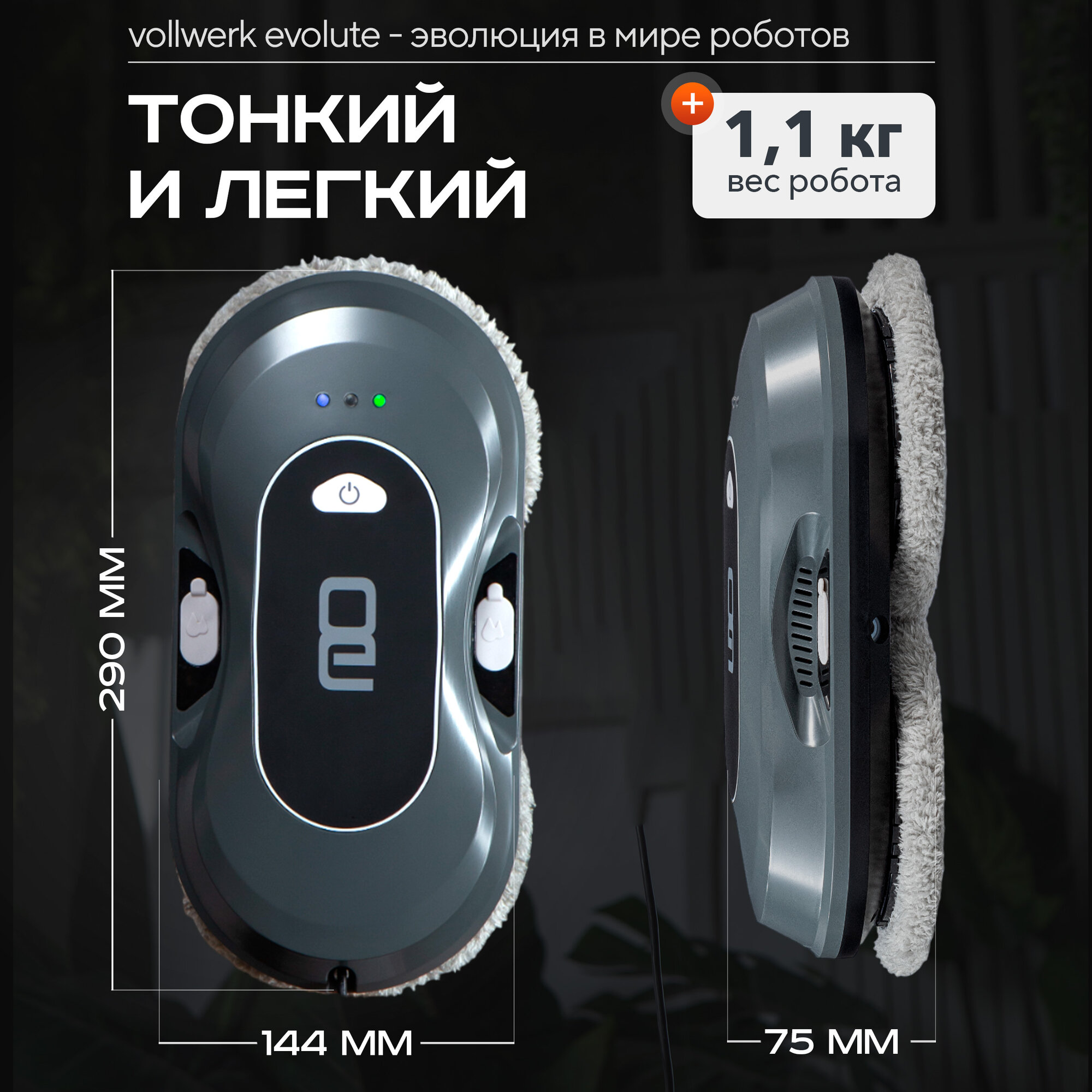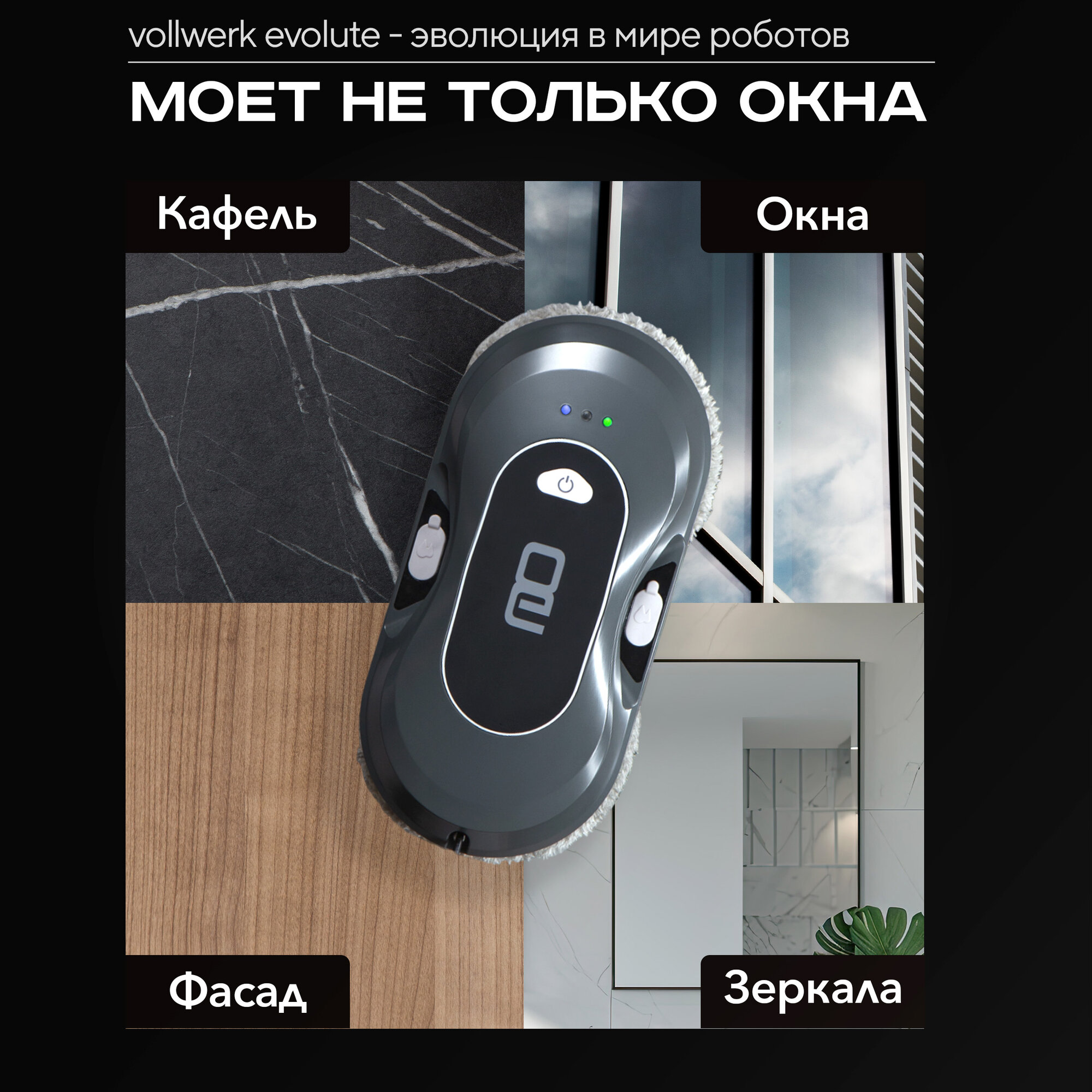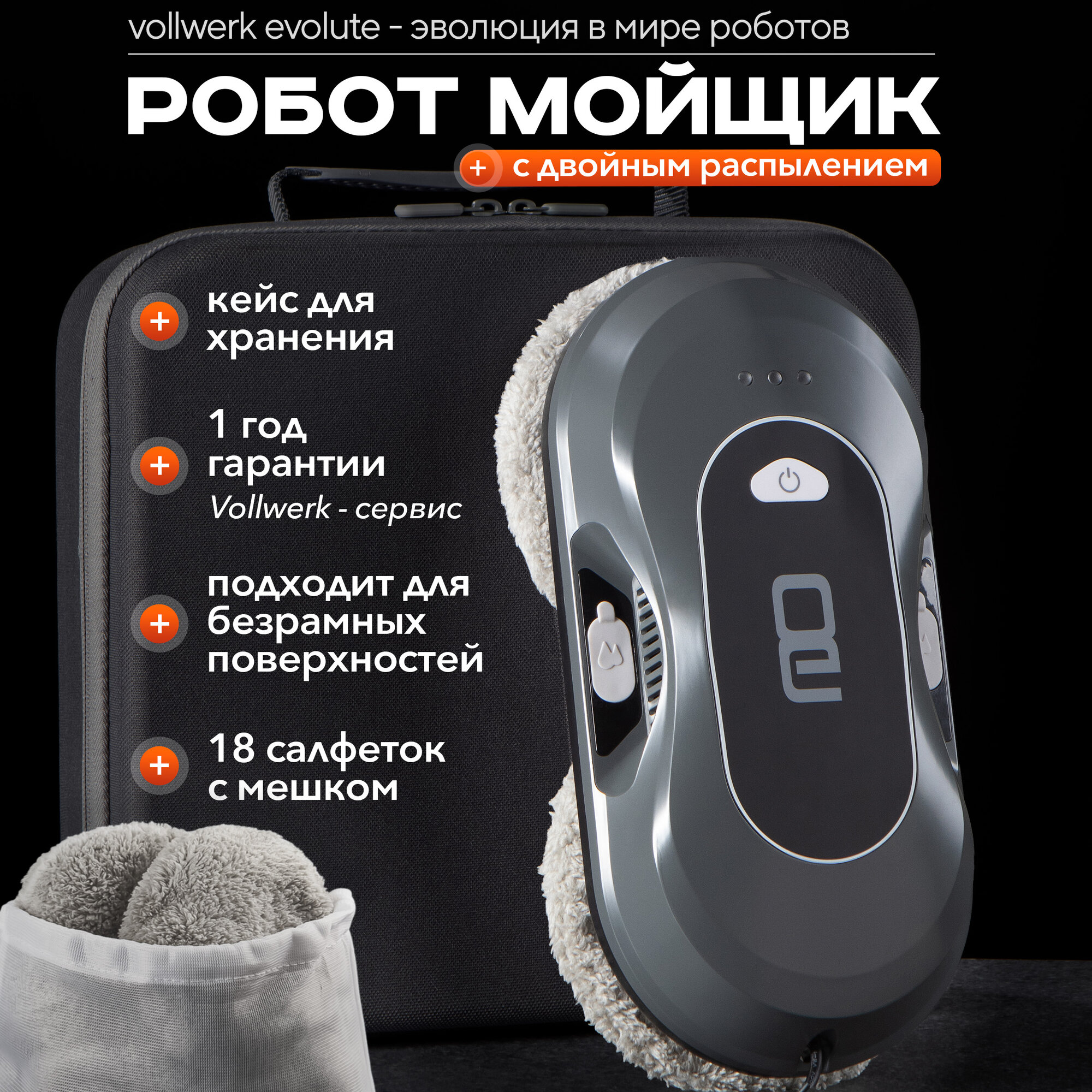 Робот-мойщик для окон Evolute, с двойным распылением, 18 салфеток, цвет металлик интересное: