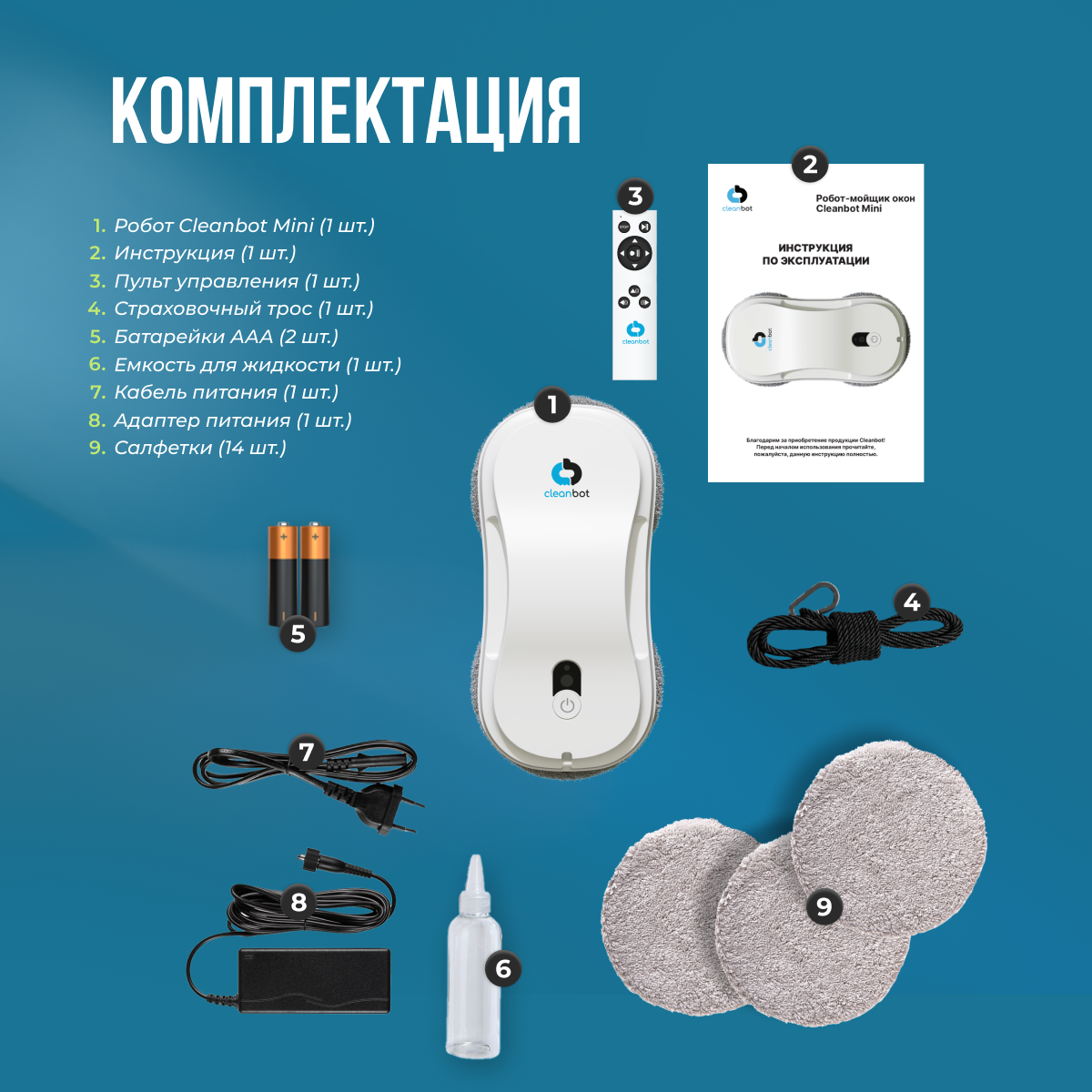 Cleanbot Робот мойщик окон с двойным распылением Mini интересное:
