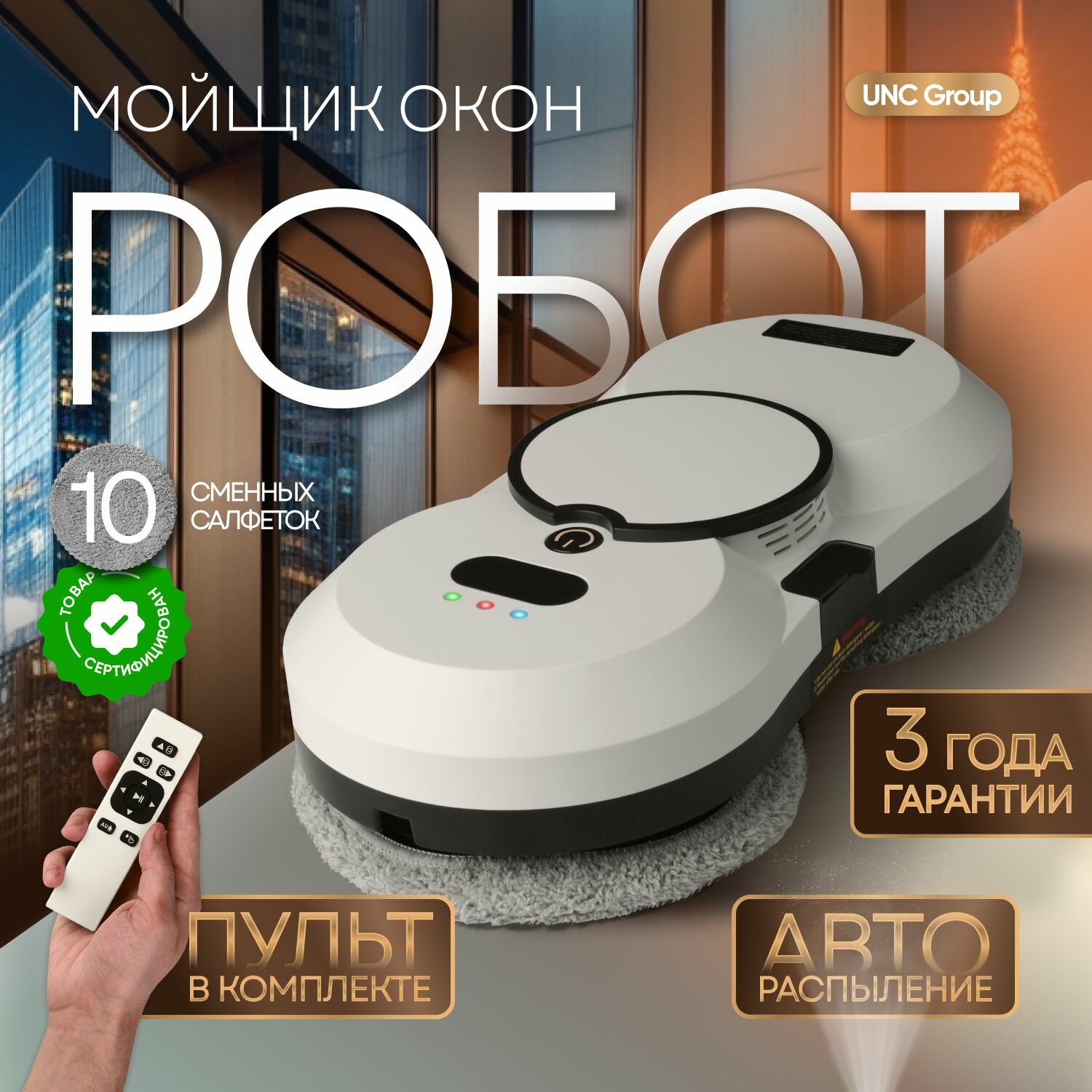 Купить Робот мойщик окон UNC робот для мойки окон с распылением со сменными салфетками 10шт.