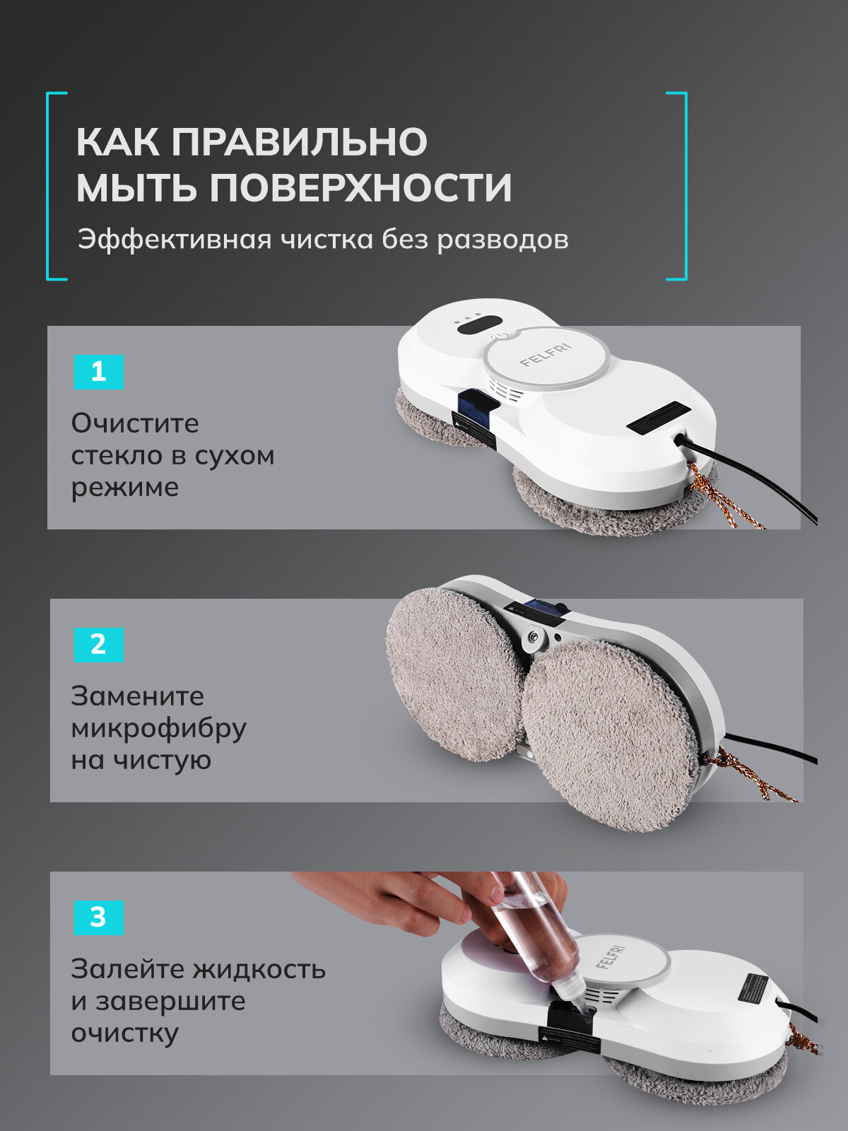 Робот мойщик окон с распылением FELFRI, 80 Вт, пульт ДУ, белый интересное: