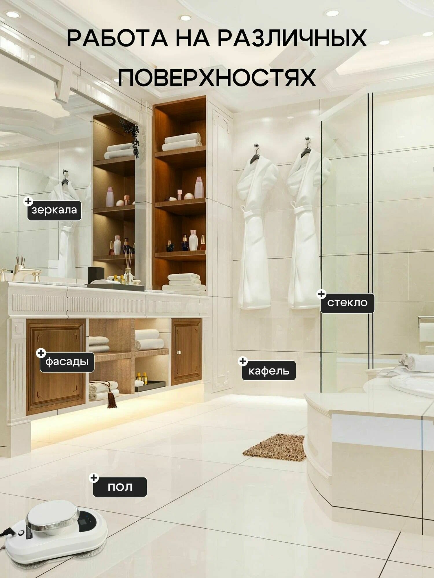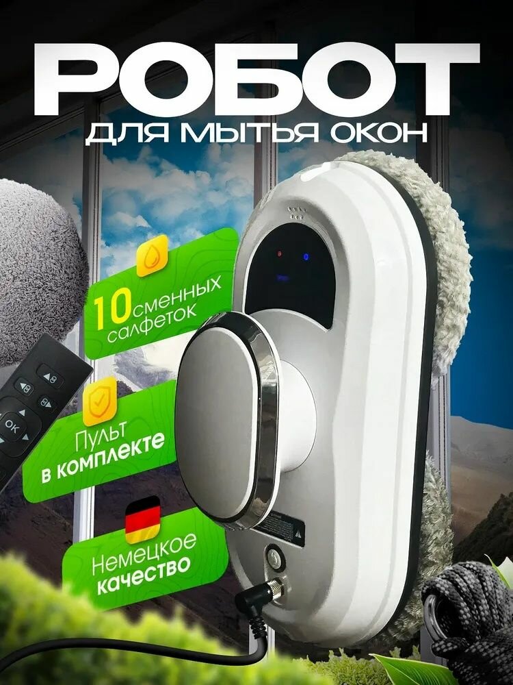 Робот мойщик окон +салфеток из микрофибры 10 штук, Робот для мойки окон и стекол, Бело интересное: