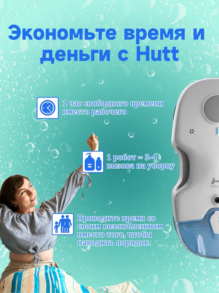Робот-мойщик окон Сила всасывания при преобразовании частоты Функция распыления воды HUTT C7 интересное: