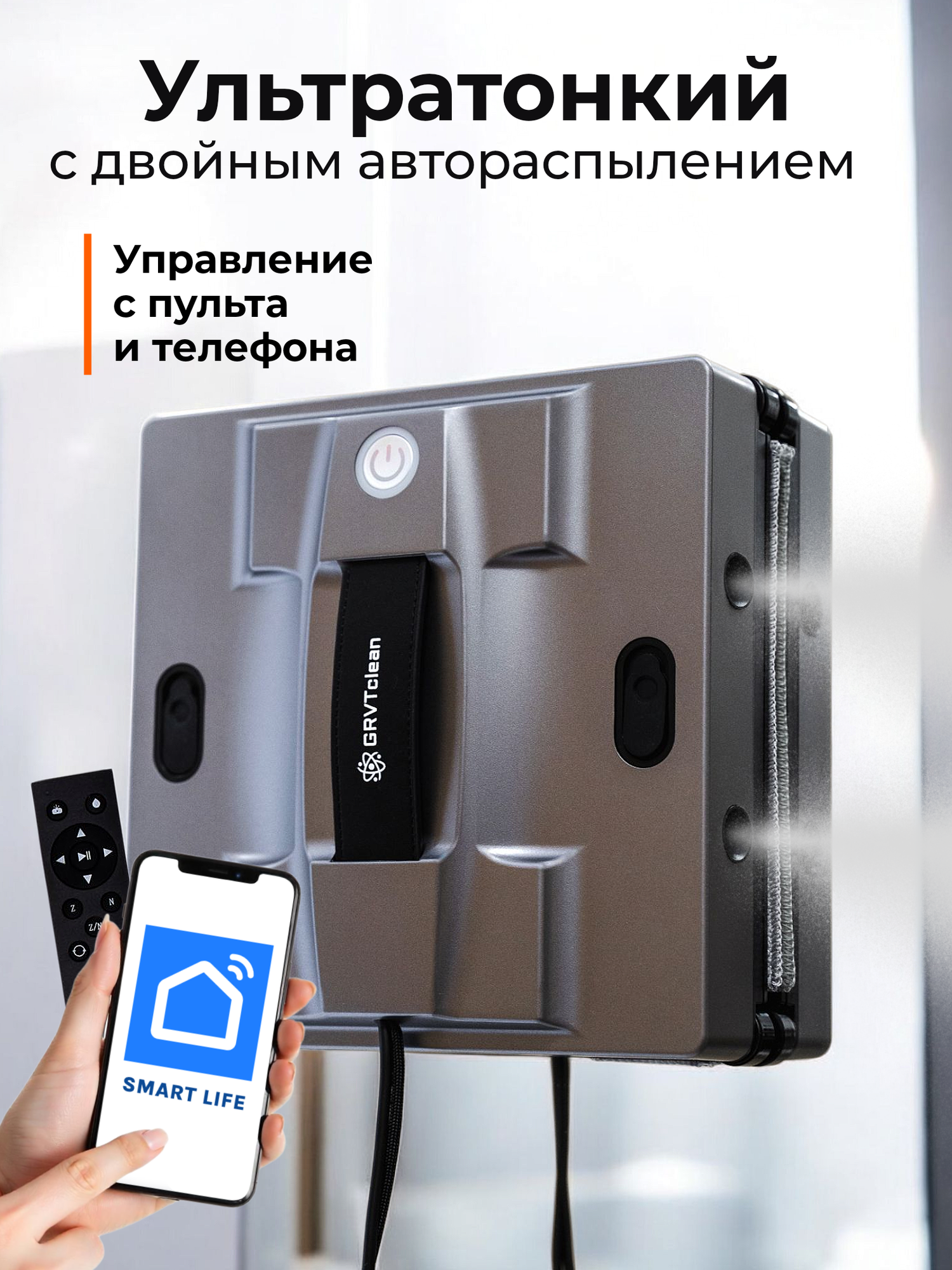 Робот мойщик окон с распылением квадратный GRVTclean серый металлик интересное: