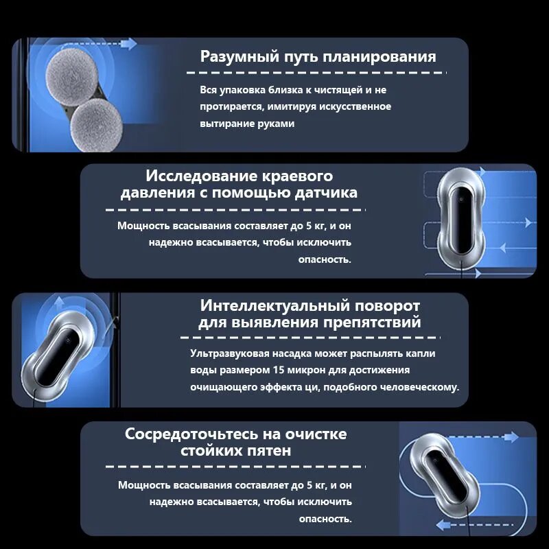 Робот для мытья окон, двустороннее распыление воды, двухдисковое двойное всасывание интересное: