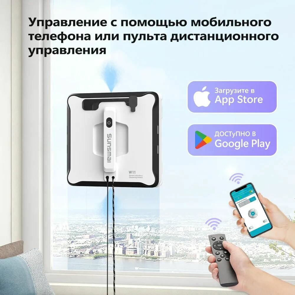 Sunsmai Робот для мойки окон W11, белый интересное: