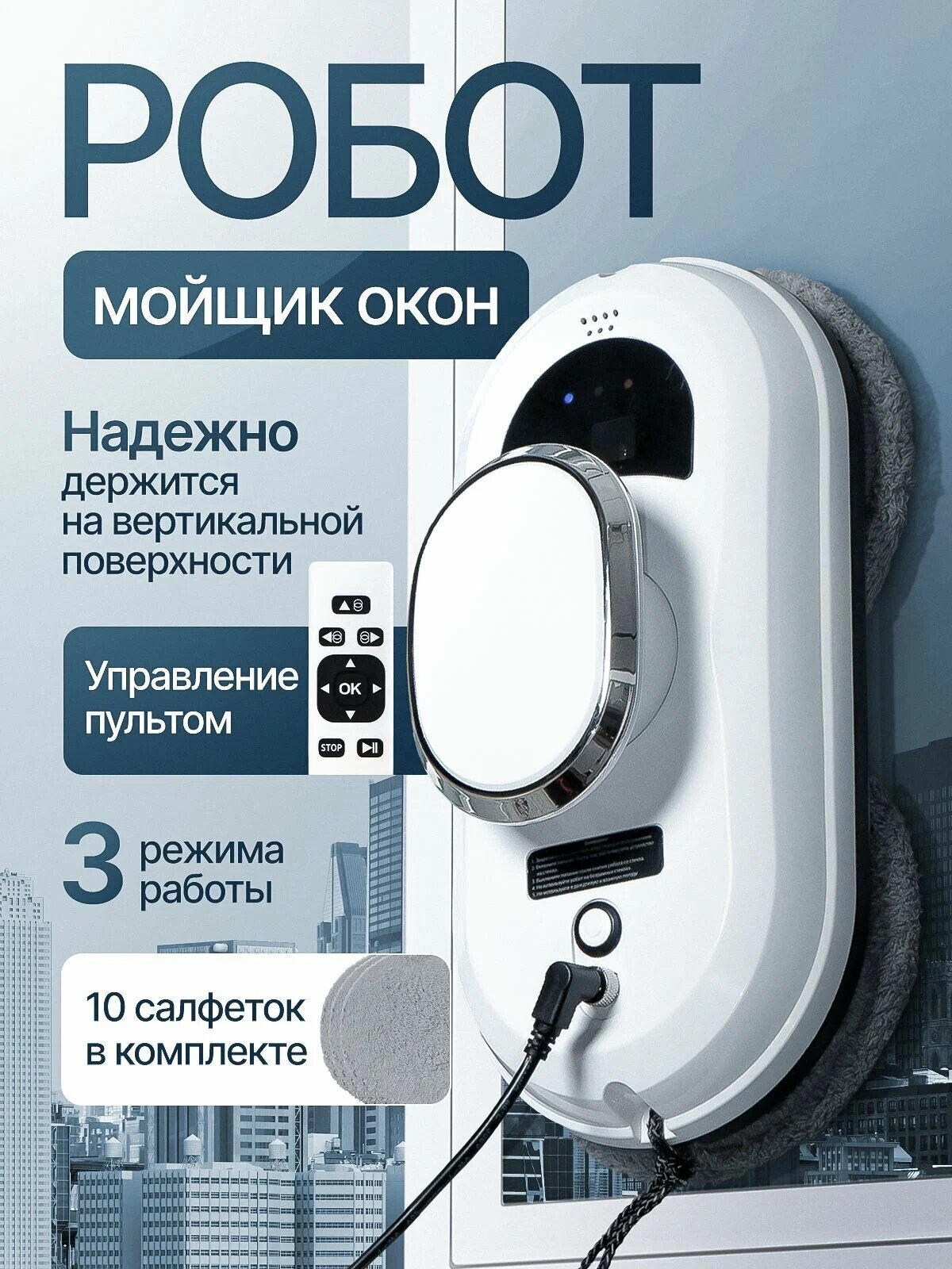 Робот для мойки окон и зеркал / Робот мойщик для окон, 10сменных салфеток интересное: