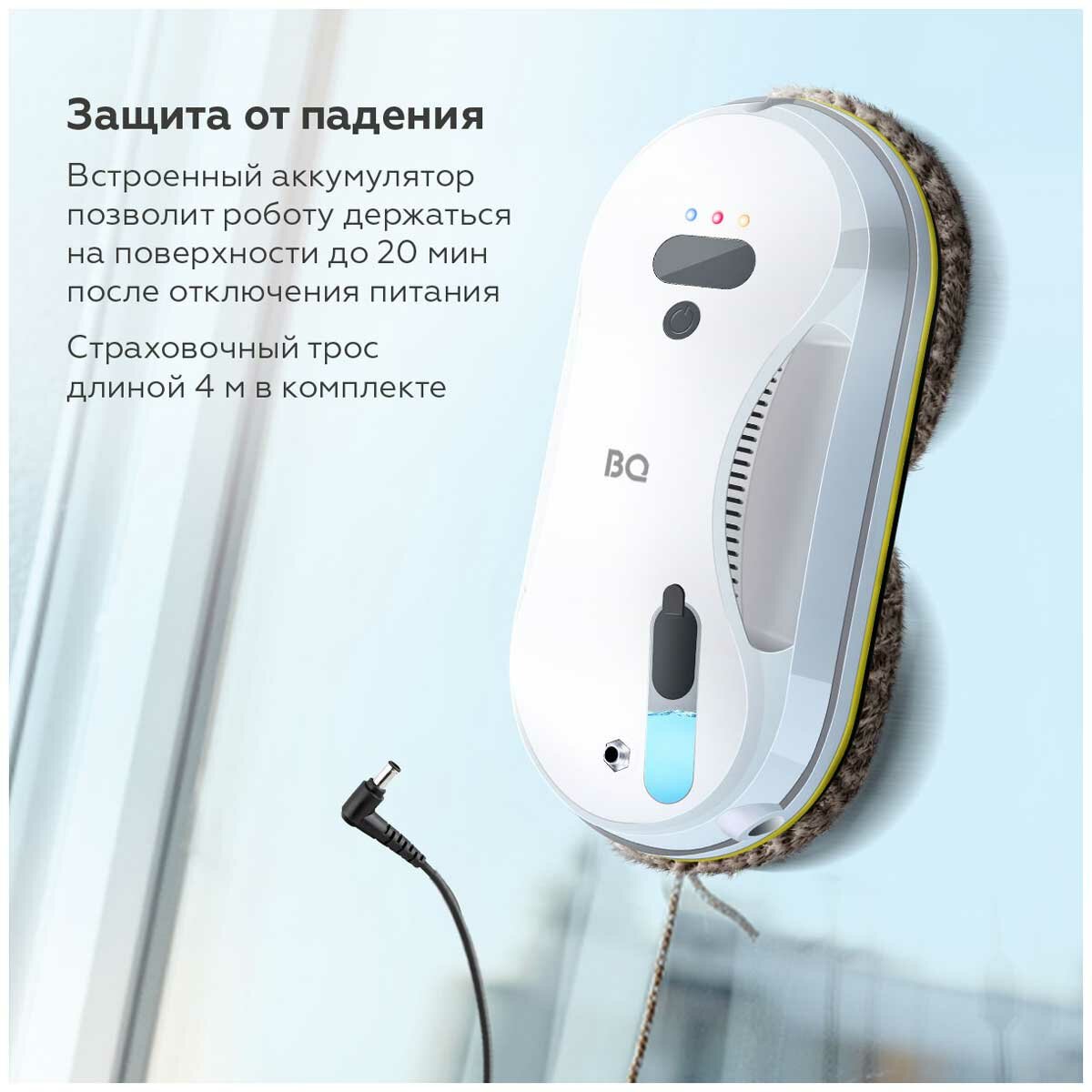 Купить Робот-мойщик окон BQ WR200S Белый, емкость аккумулятора 500 мАч, пульт ду