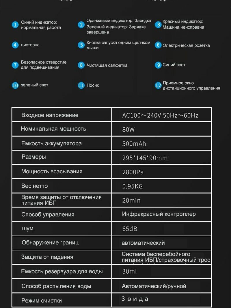 Робот для мойки окон, дистанционный пульт, функция разбрызгивания воды интересное: