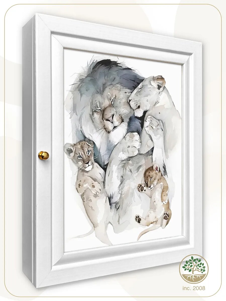 Ключница настенная с дверцей "Львиная семья" (Петля справа).