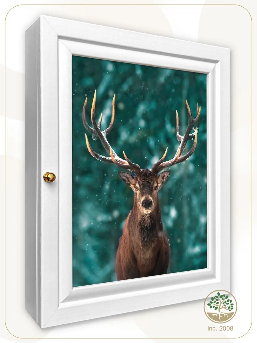Купить Ключница настенная с дверцей "Олень в лесу" (петля справа)
