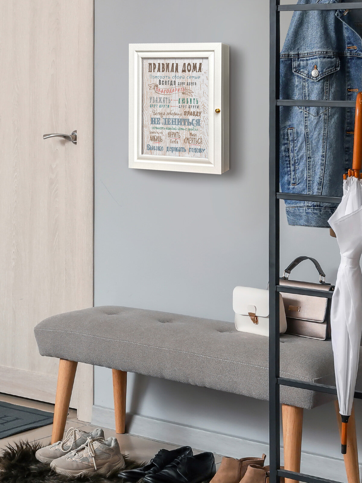 Ключница настенная с дверцей "Правила дома" Topposters, 26х31 см, (петли слева) интересное: