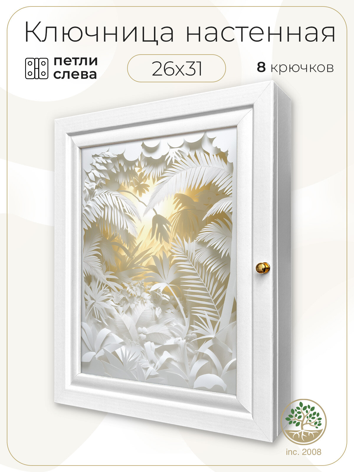Ключница Topposters "Цветущее дерево", МДФ/ПВХ, с дверцей, белая, 31х26х5 см
