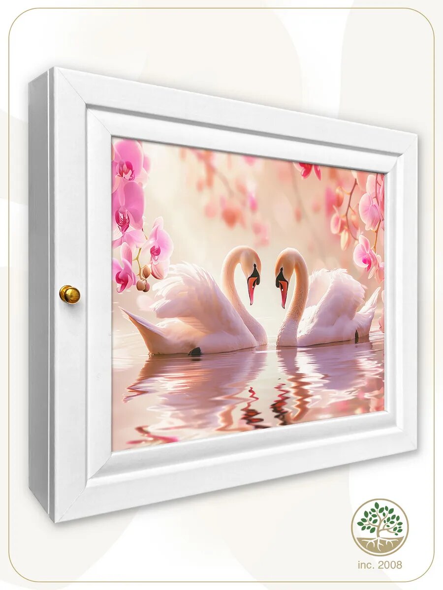 Ключница настенная с дверцей "Лебеди в цветах" (правая петля) интересное: