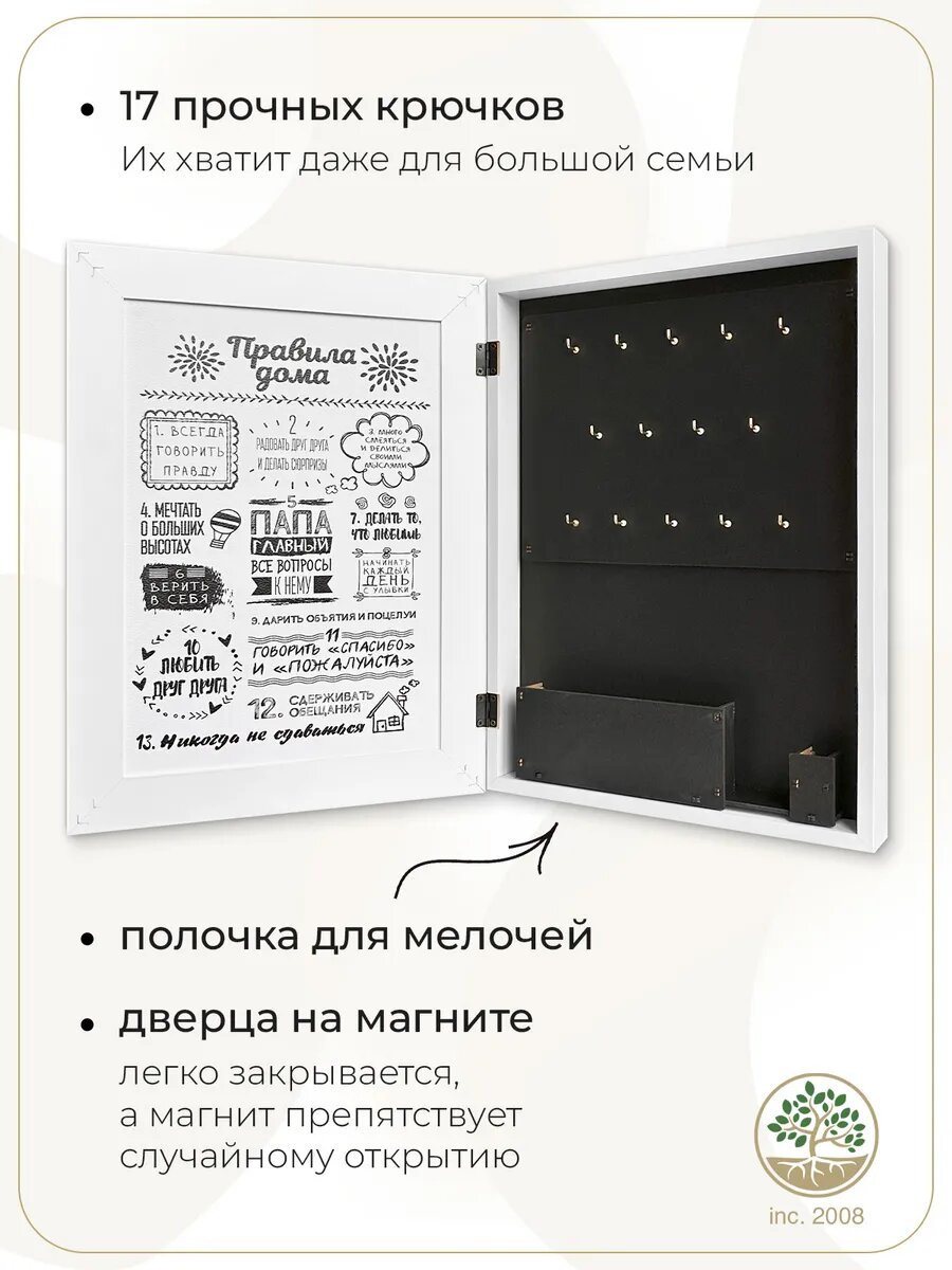 Ключница настенная Topposters "Правило нашего дома", с дверцей, белая, (петля справа)