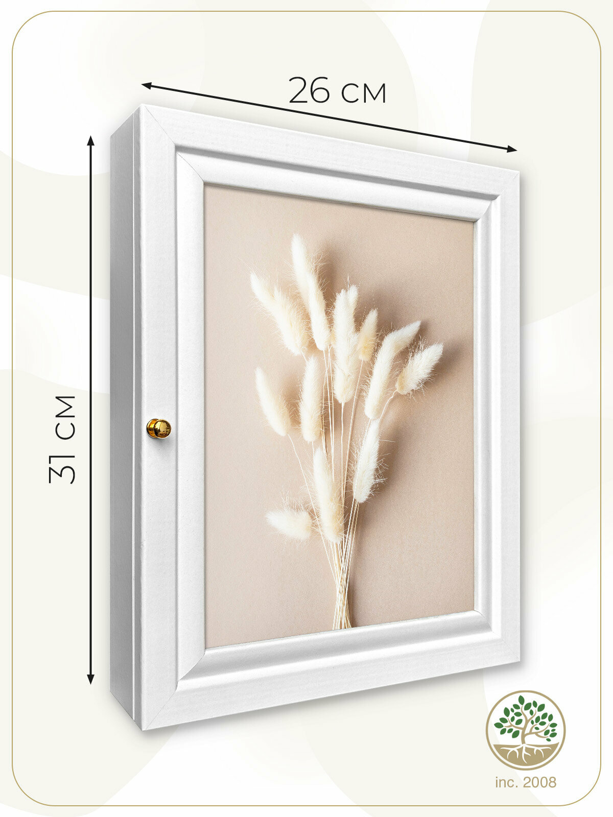 Ключница настенная большая с дверцей "Сухоцветы" 29х39 см. (петля справа)
