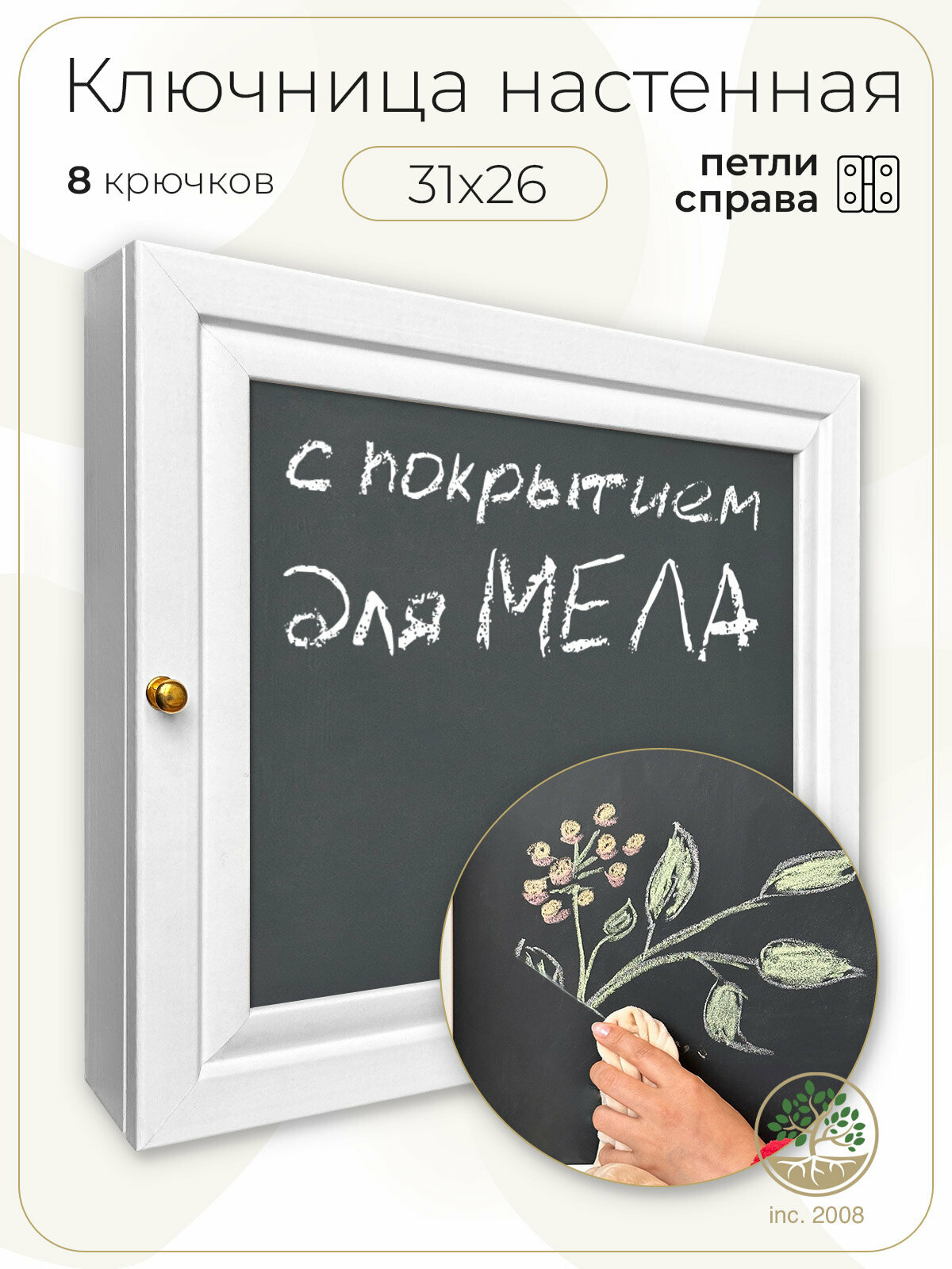 Ключница настенная Большая "Меловая доска" с дверцей 29х39 см. (Петля слева)