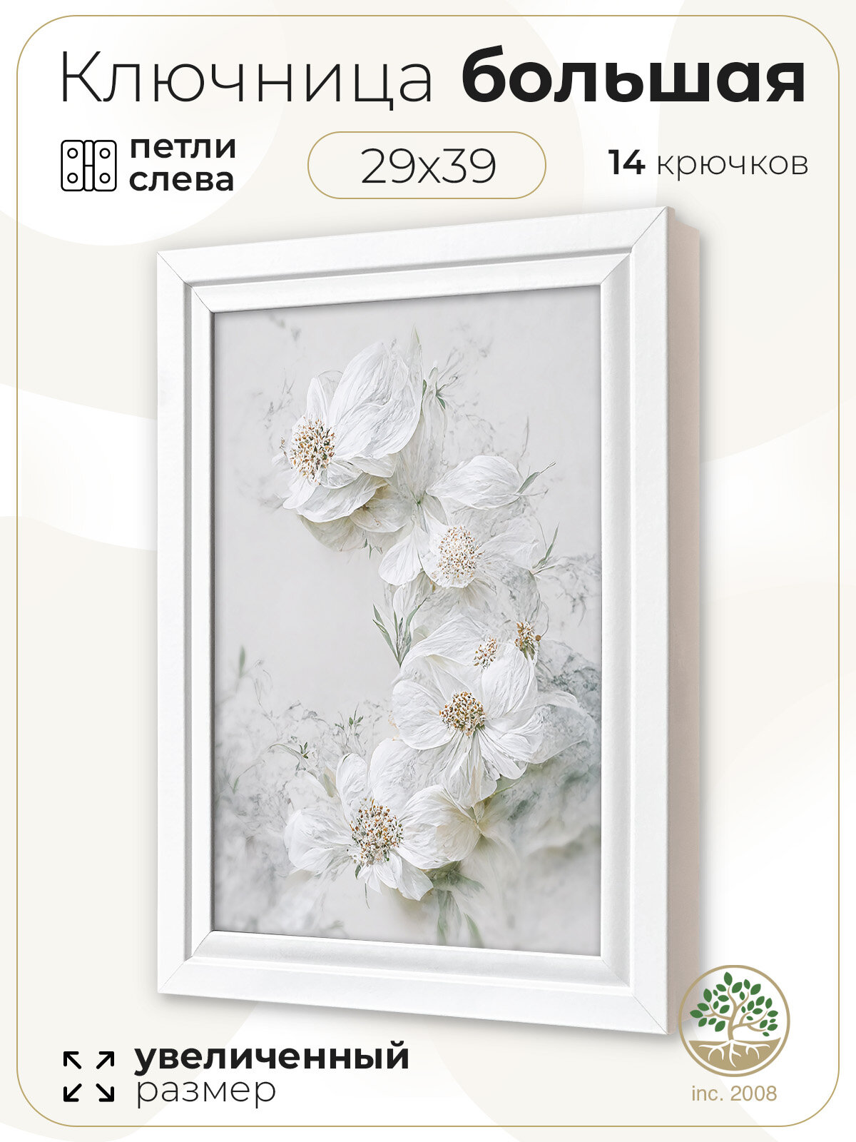 Ключница Topposters "Три цветка", настенная, МДФ/ПВХ, белая, 31,5х26х5 см