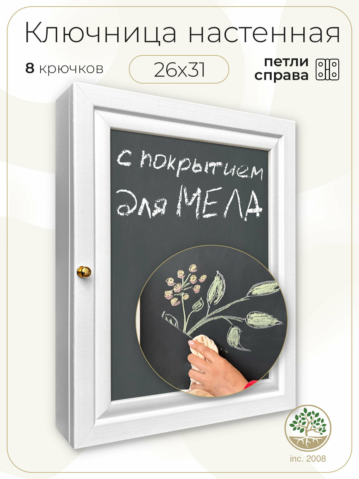 Ключница настенная с меловой доской на дверце Topposters, 26х31 см, (петли слева)