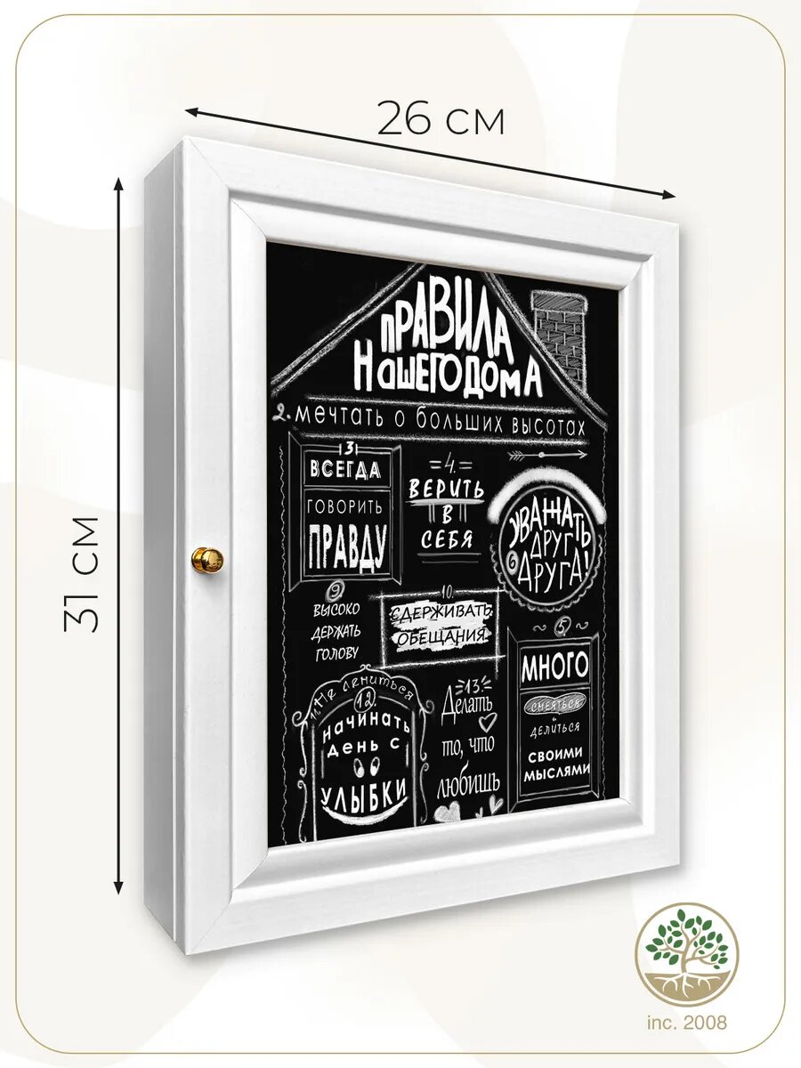 Купить Ключница настенная Topposters "Правило нашего дома", с дверцей, белая, (петля справа)