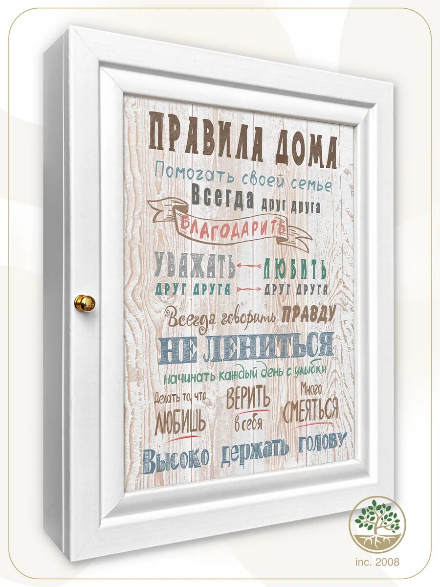 Ключница настенная Topposters "Правило нашего дома", с дверцей, белая, (петля справа)
