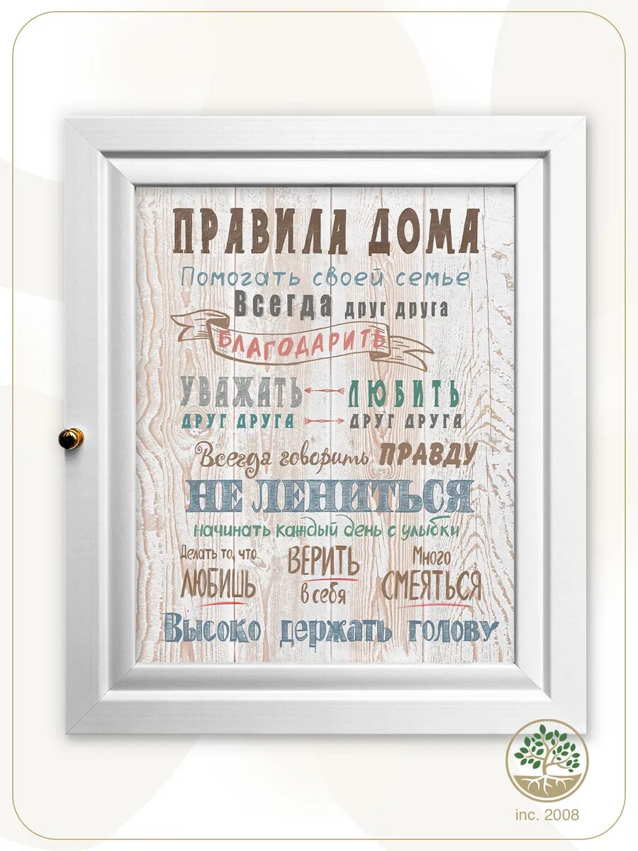 Ключница настенная с дверцей Topposters, Правила дома, 26х31 см, (петли справа)