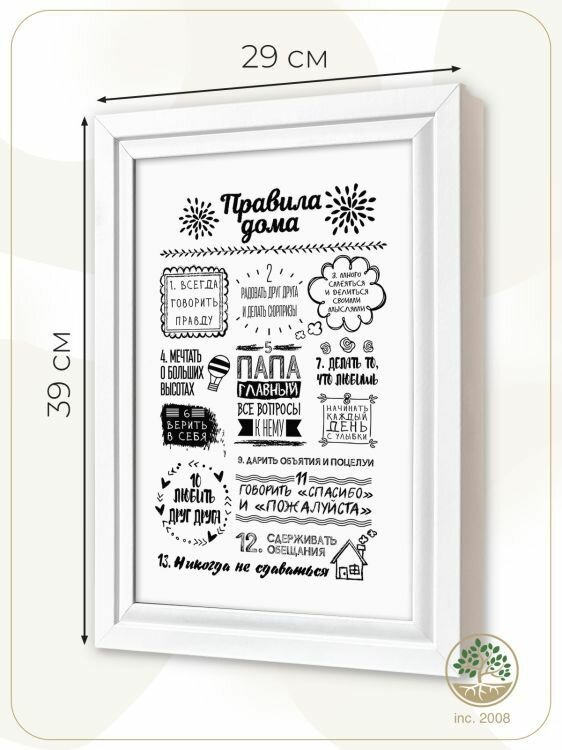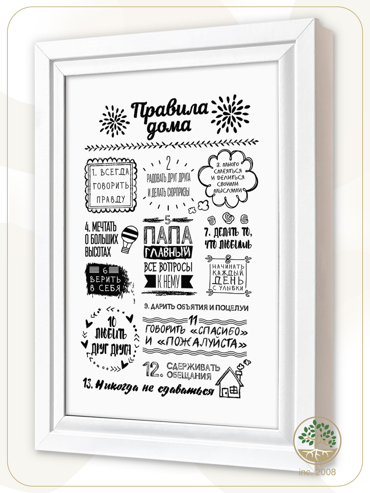 Ключница настенная с дверцей Topposters, Правила дома, 26х31 см, (петли справа)