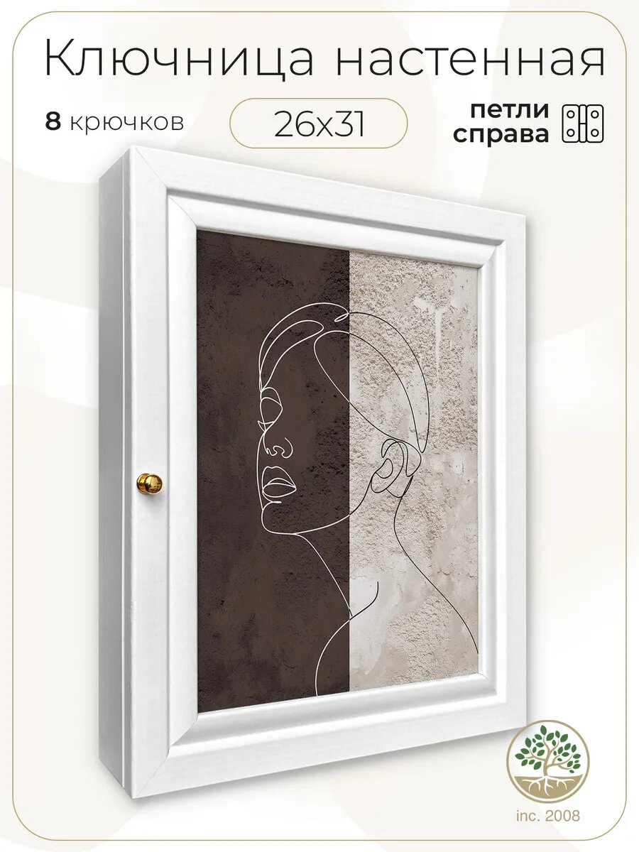 Ключница настенная с дверцей Topposters, Поцелуй, 26х31 см, (петли справа)