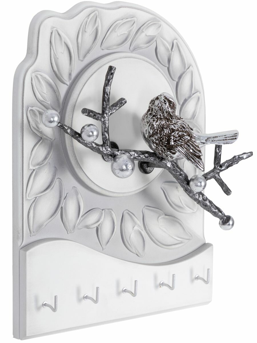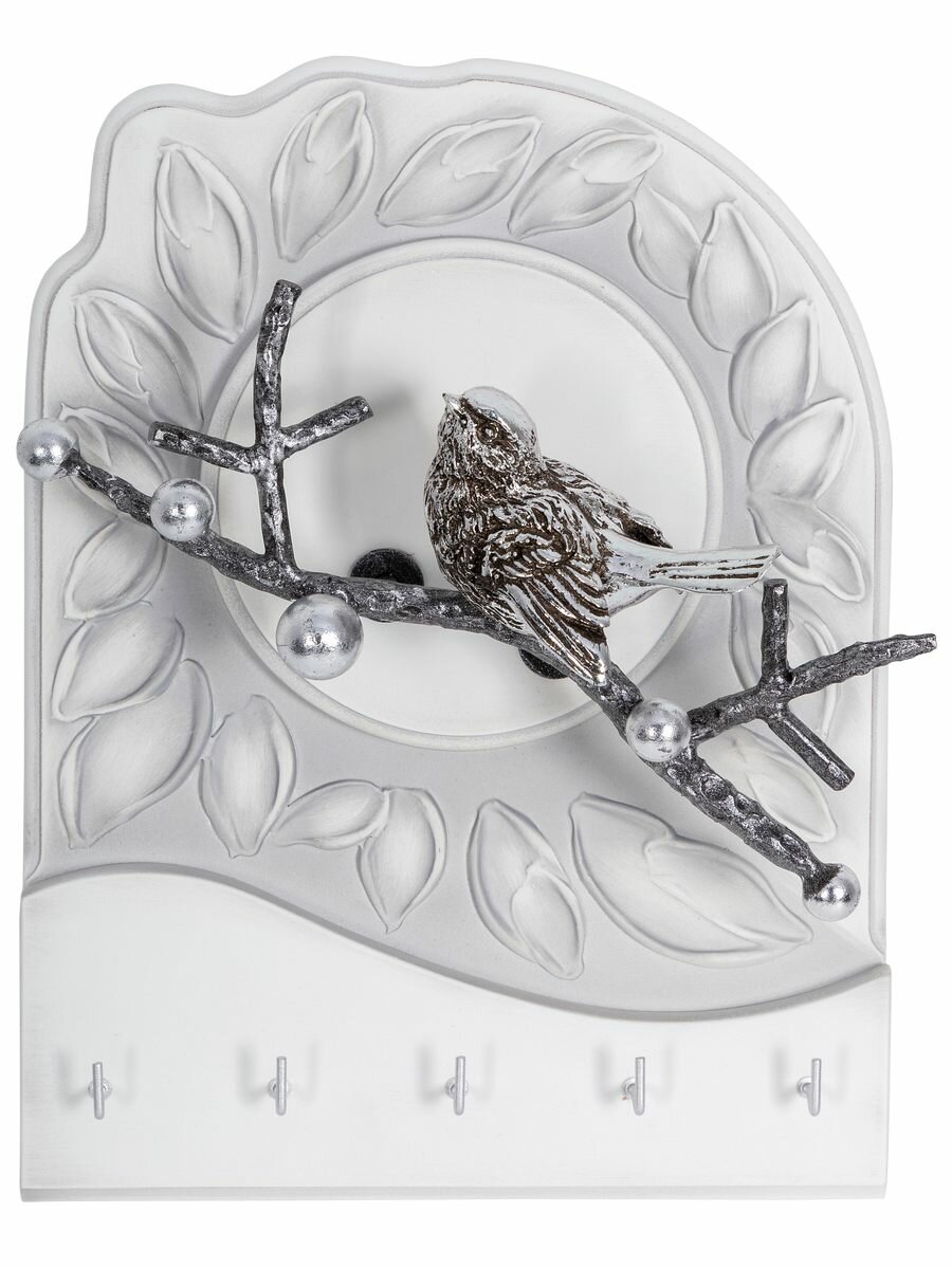 Купить Настенная ключница Bogacho Птичка Терра мини с крючками и декоративной фигуркой птички в прихожую и коридор