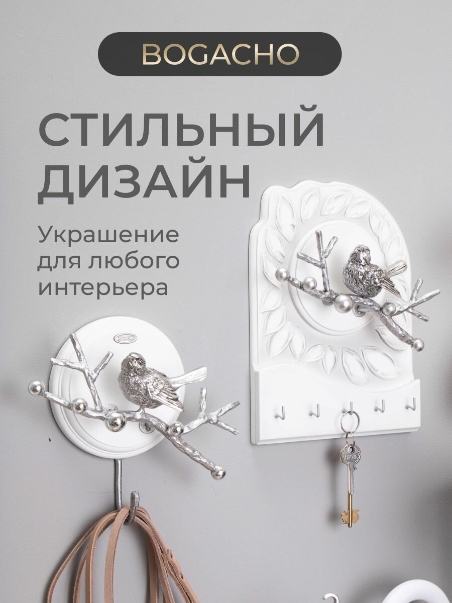 Настенная ключница Bogacho Птичка Терра мини с крючками и декоративной фигуркой птички в прихожую и коридор интересное: