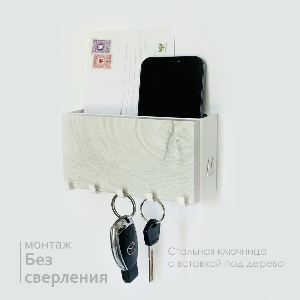Купить Ключница Molinardi "Creativo", с карманом, металл, 5 ключей, Дуб белёный на белом