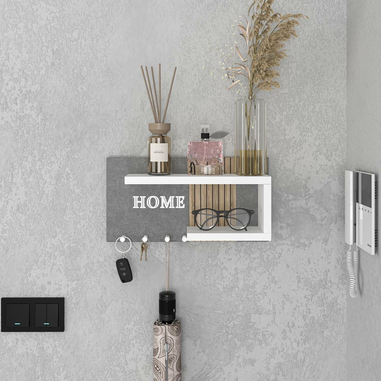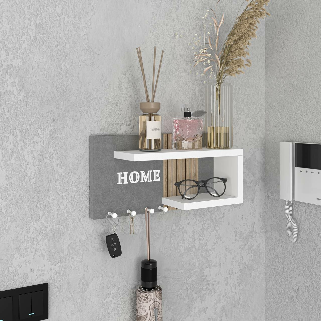 Ключница R.ROST KEY HOUSE, настенная, мягкая, с полкой, серая+белая, 1 шт