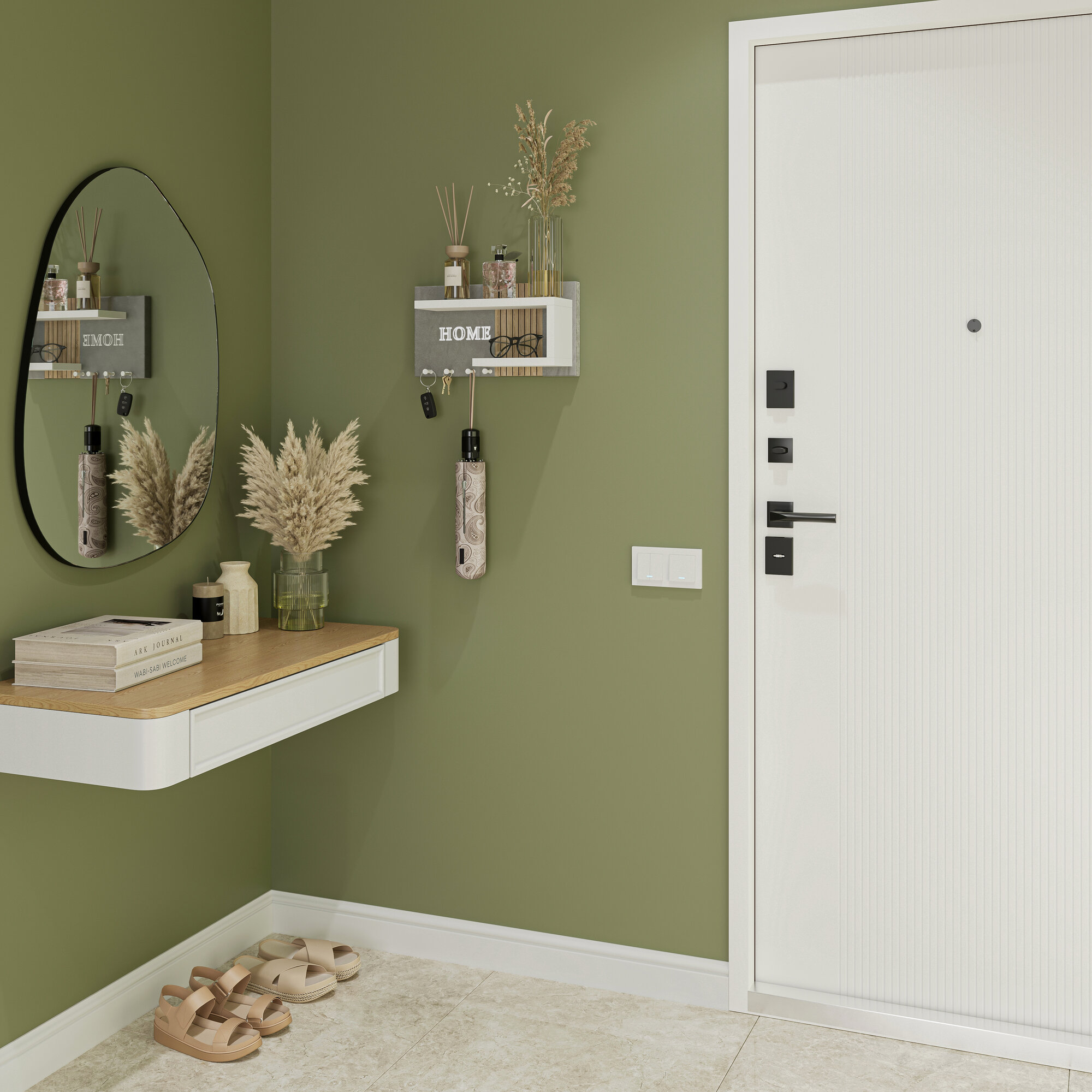 Ключница настенная Мягкая/цвет бежевый + полка белая/1шт
