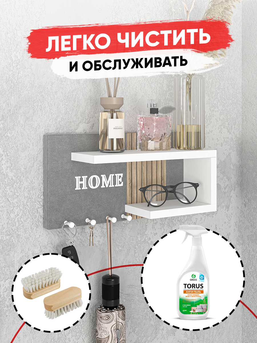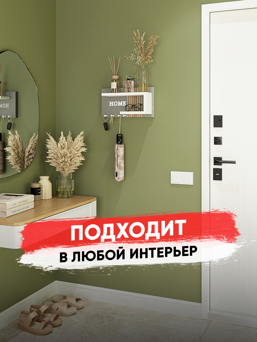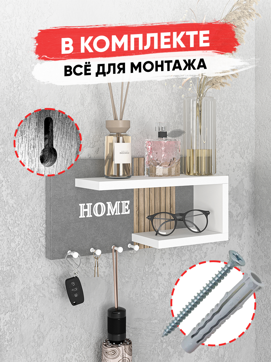 Ключница настенная Мягкая /цвет серый+ рейки санома + полка белая/1шт интересное: