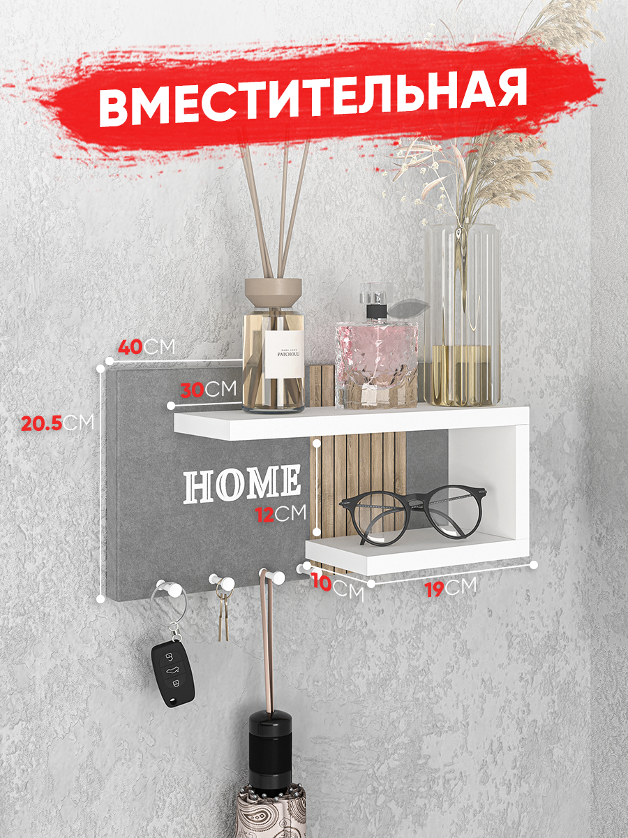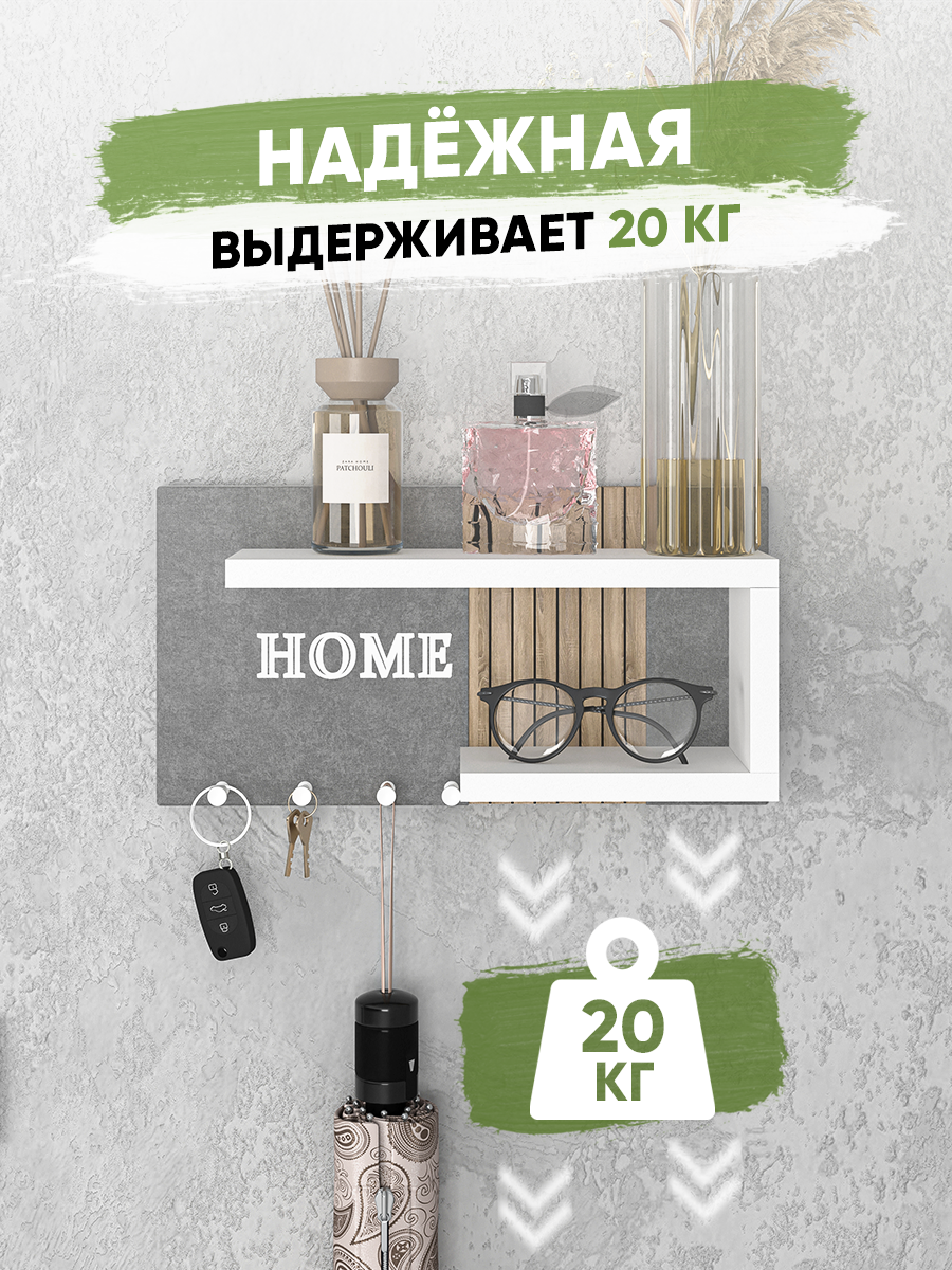 Купить Ключница настенная Мягкая /цвет серый+ рейки санома + полка белая/1шт