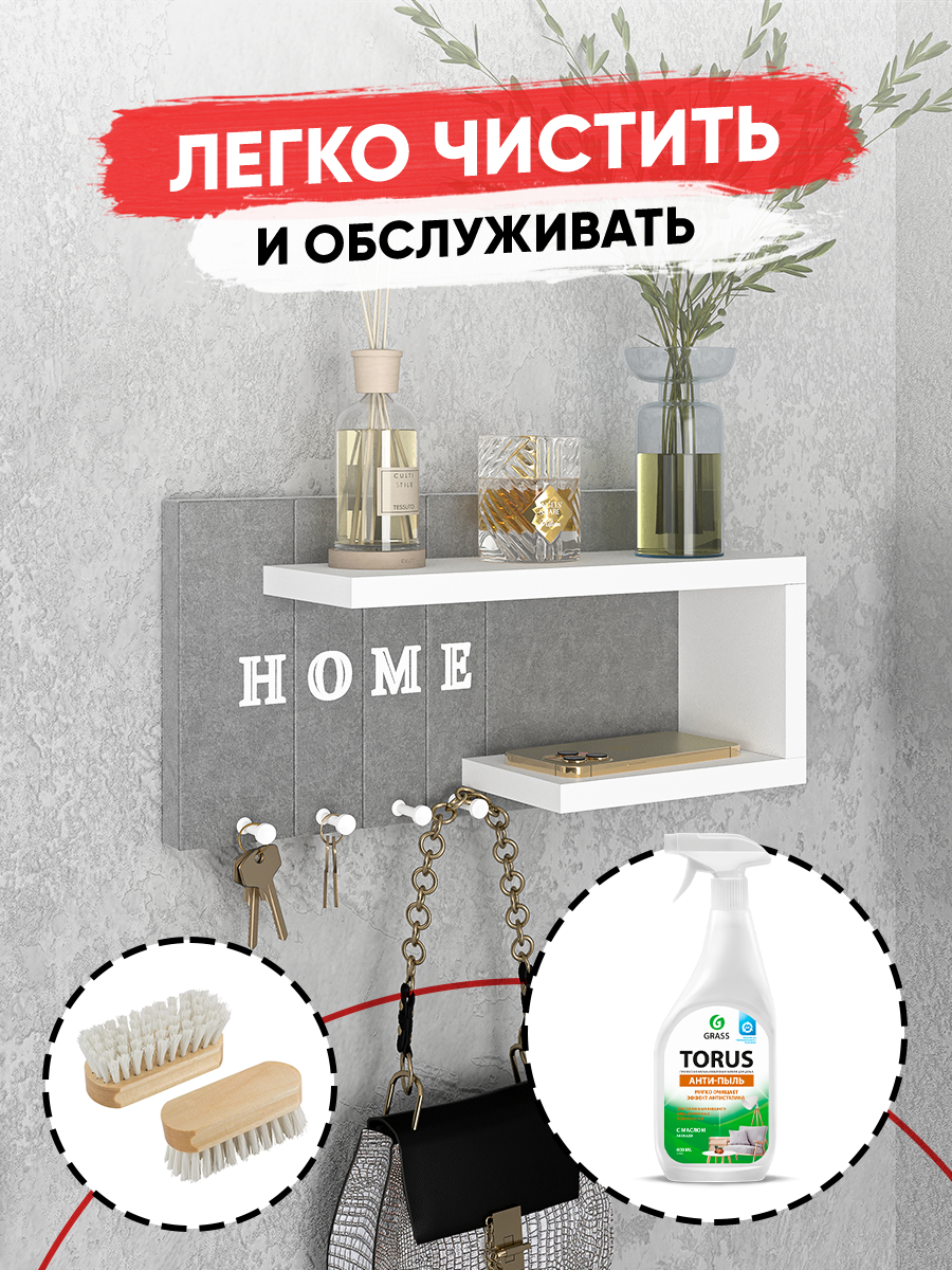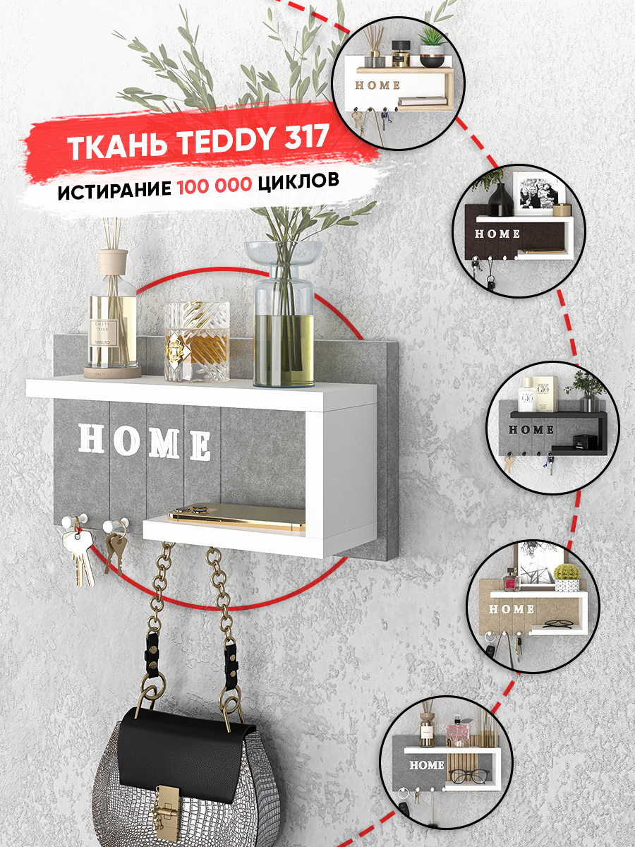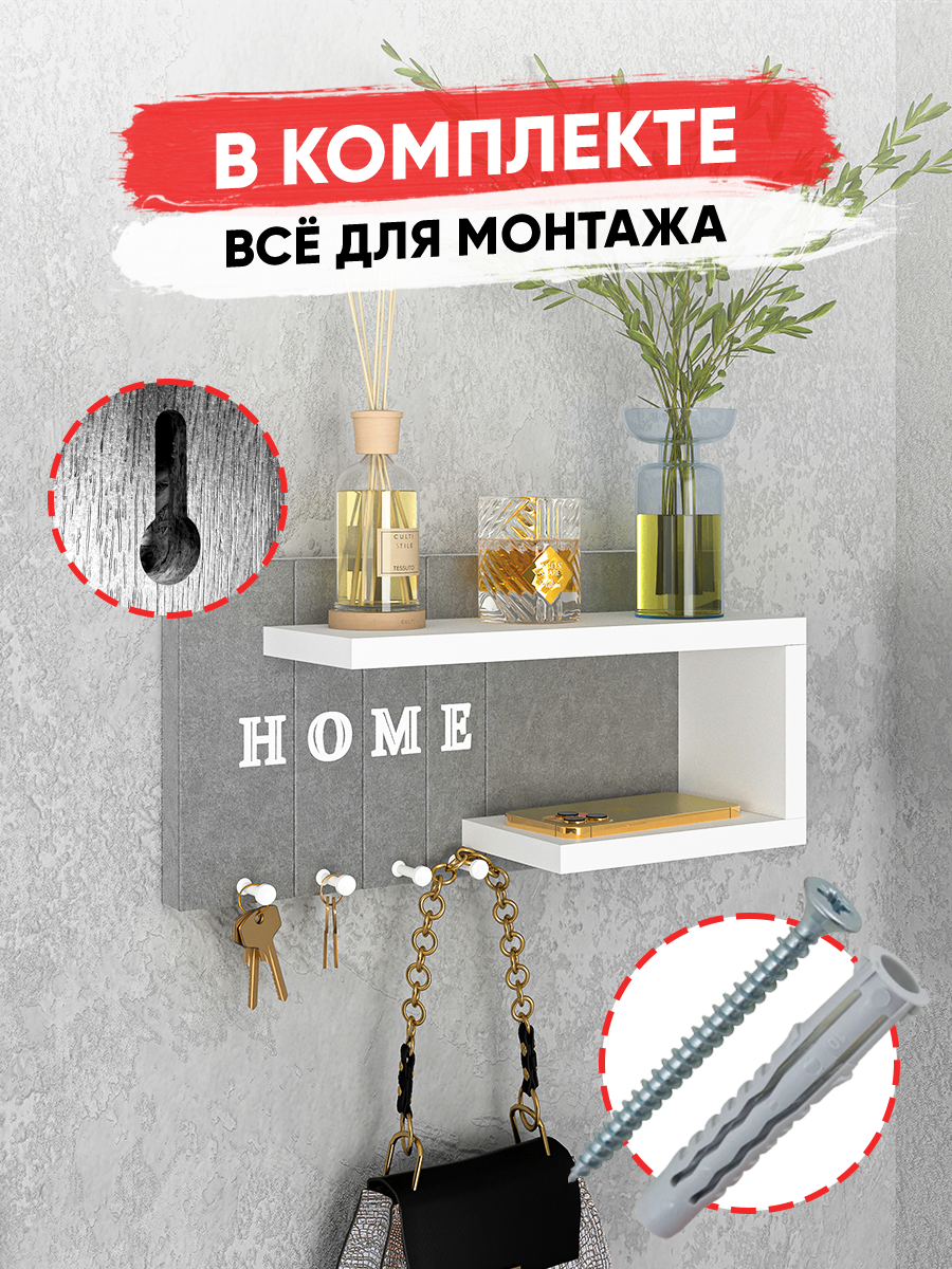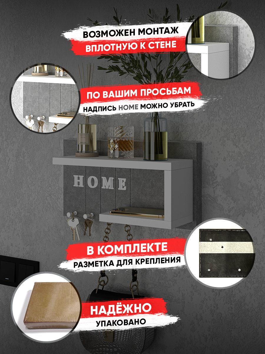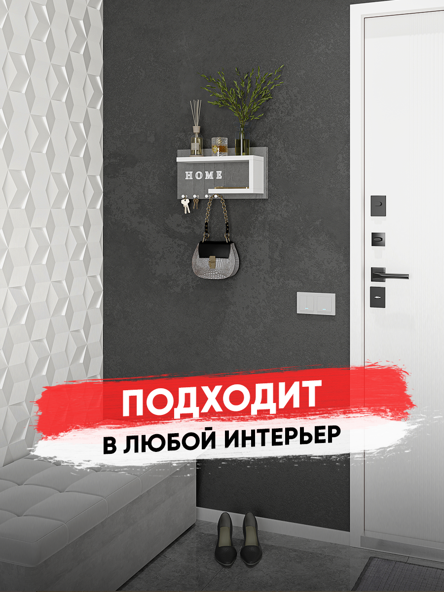 Ключница R.ROST KEY HOUSE, настенная, мягкая, с полкой, серая+белая, 1 шт интересное:
