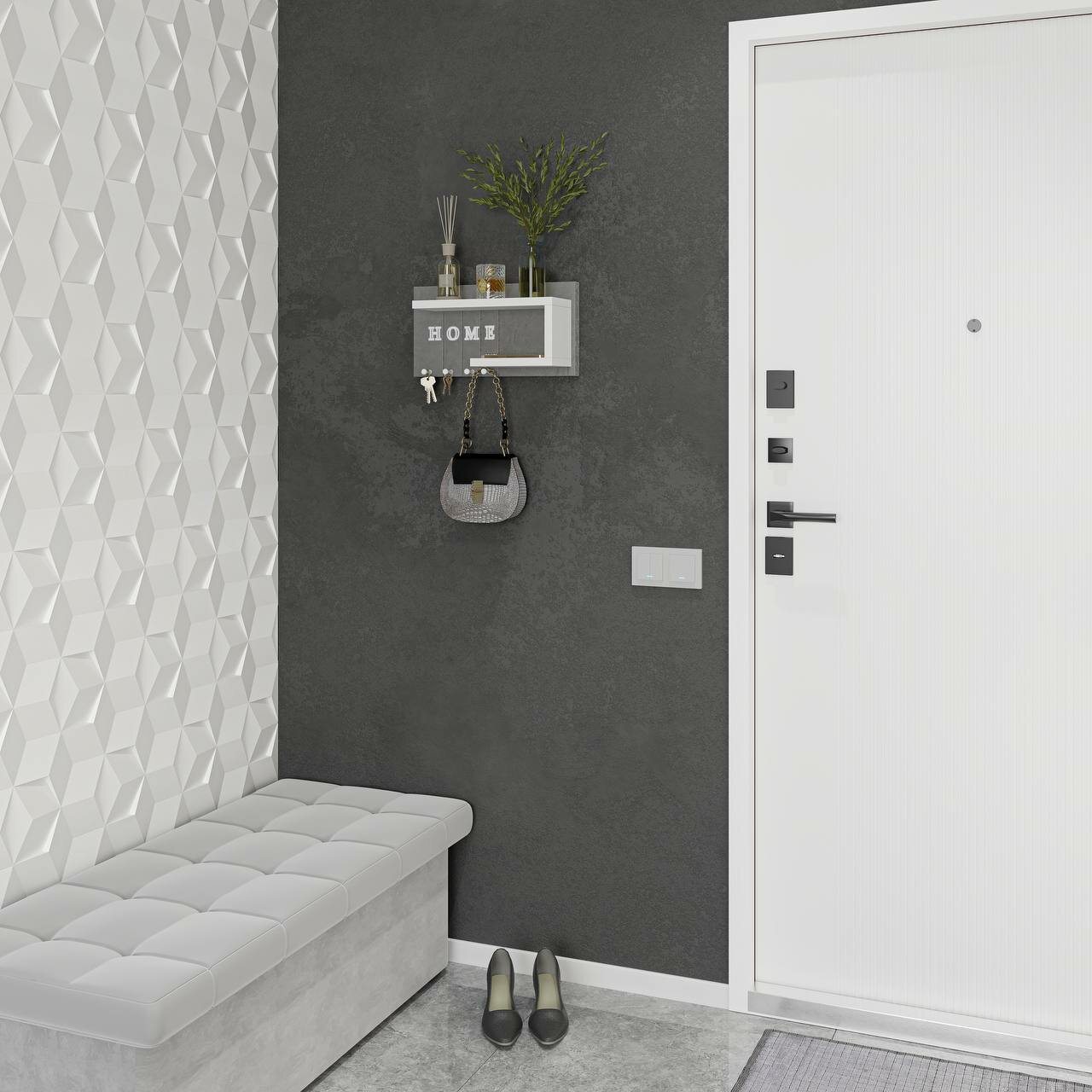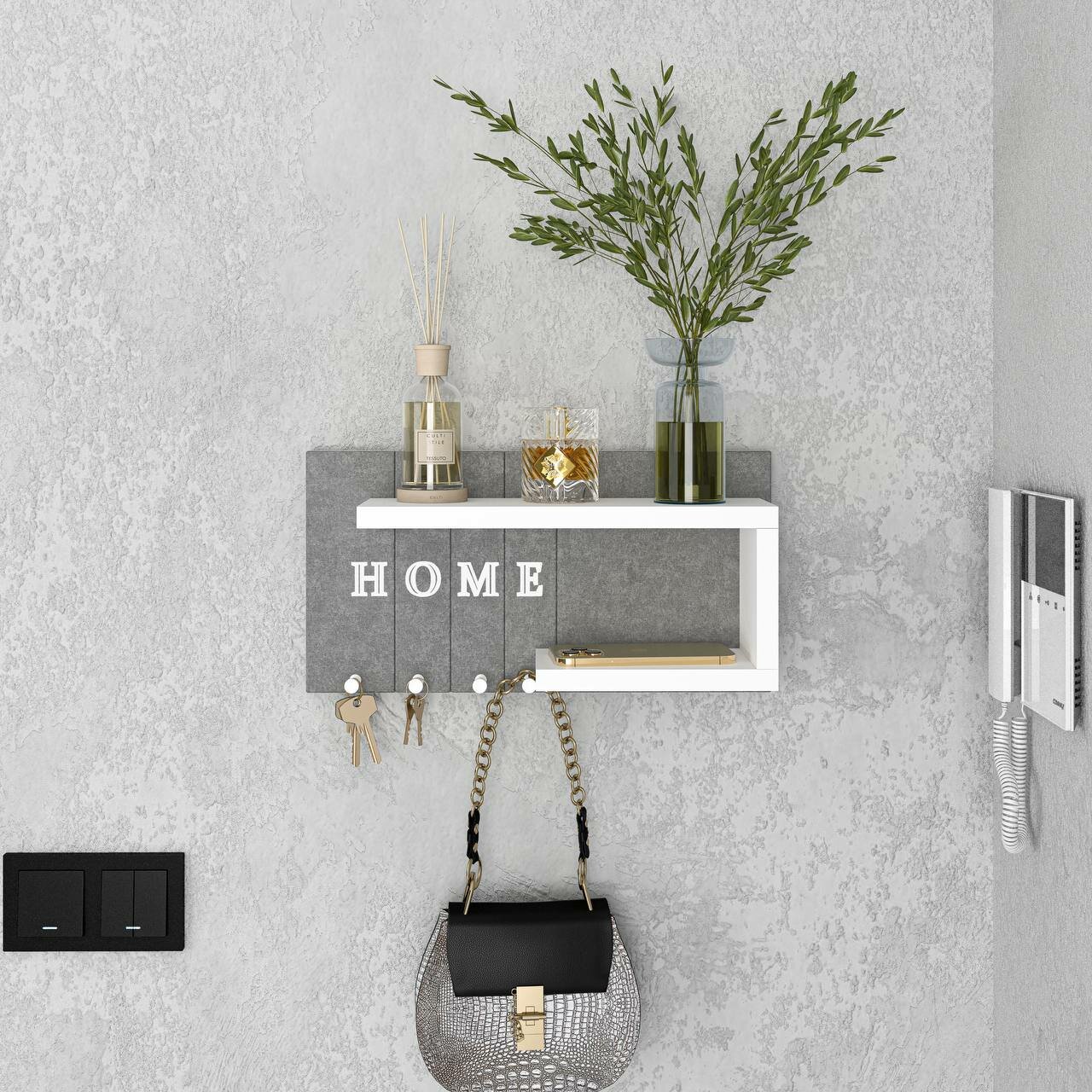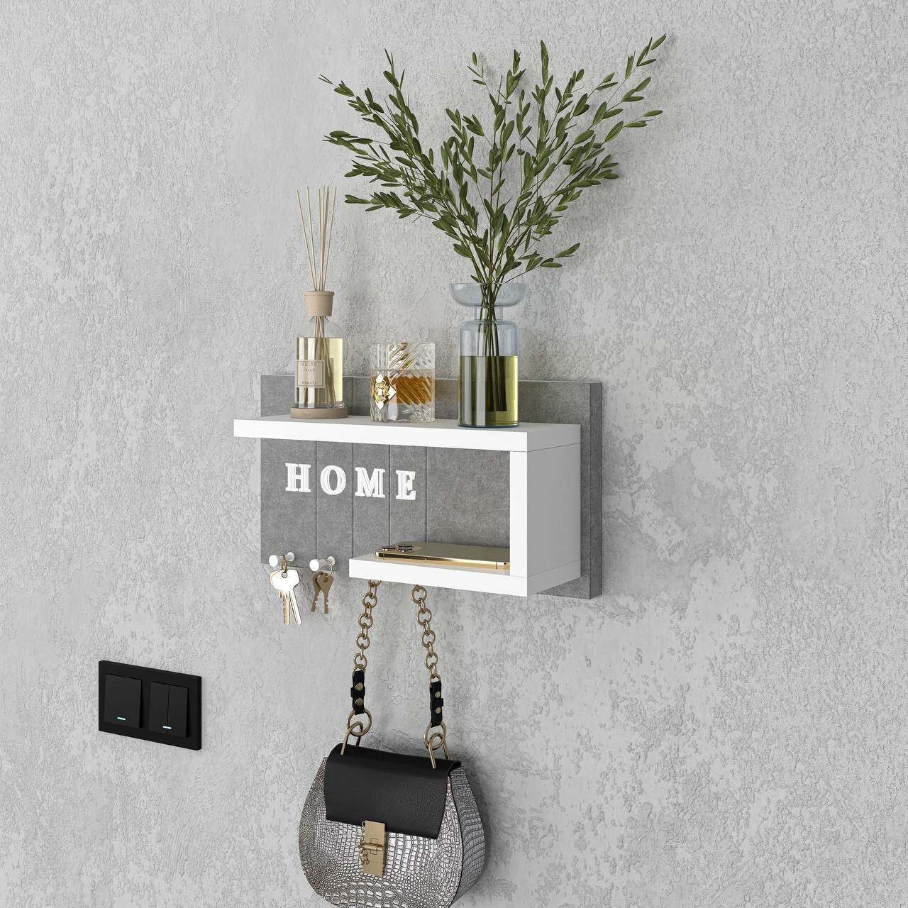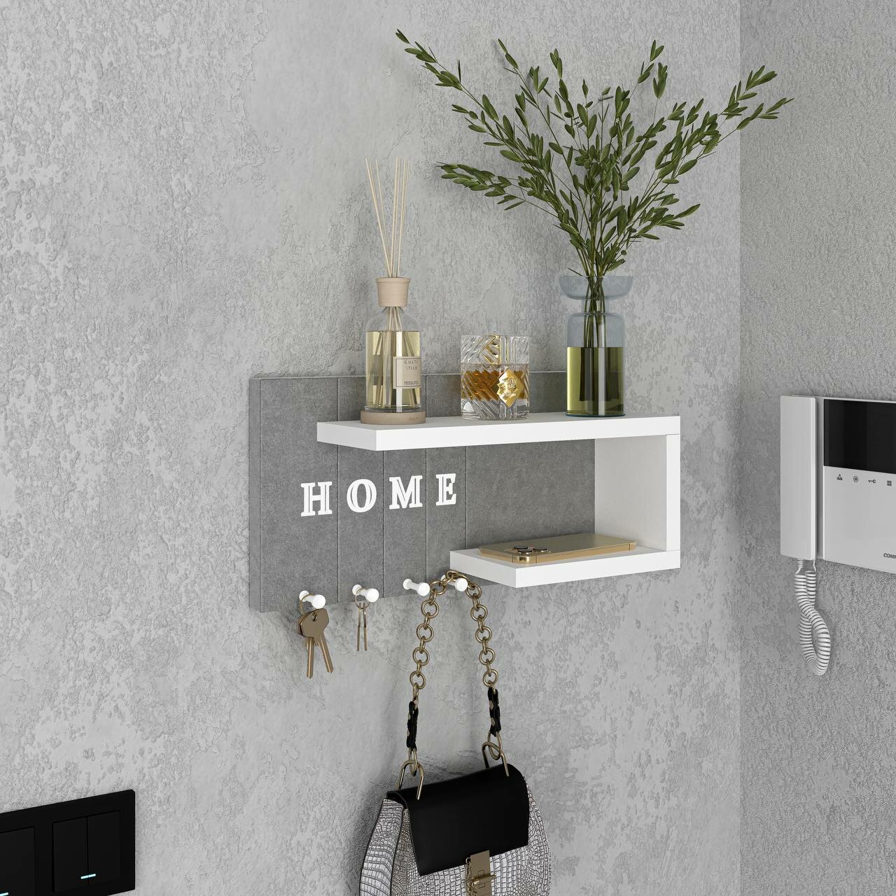 Ключница R.ROST KEY HOUSE, настенная, мягкая, с полкой, серая+белая, 1 шт интересное:
