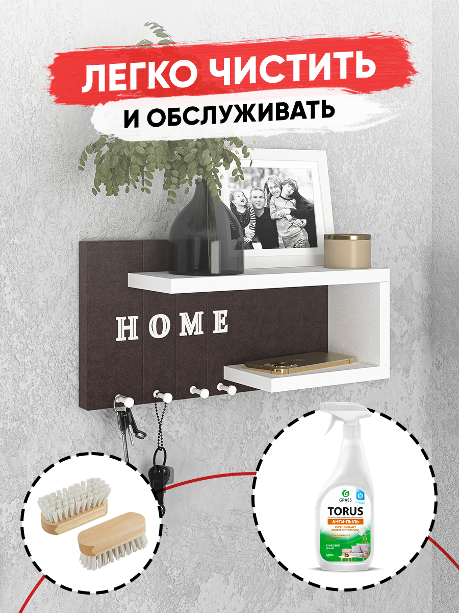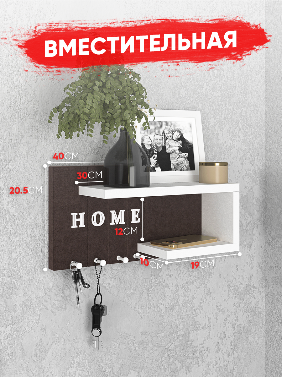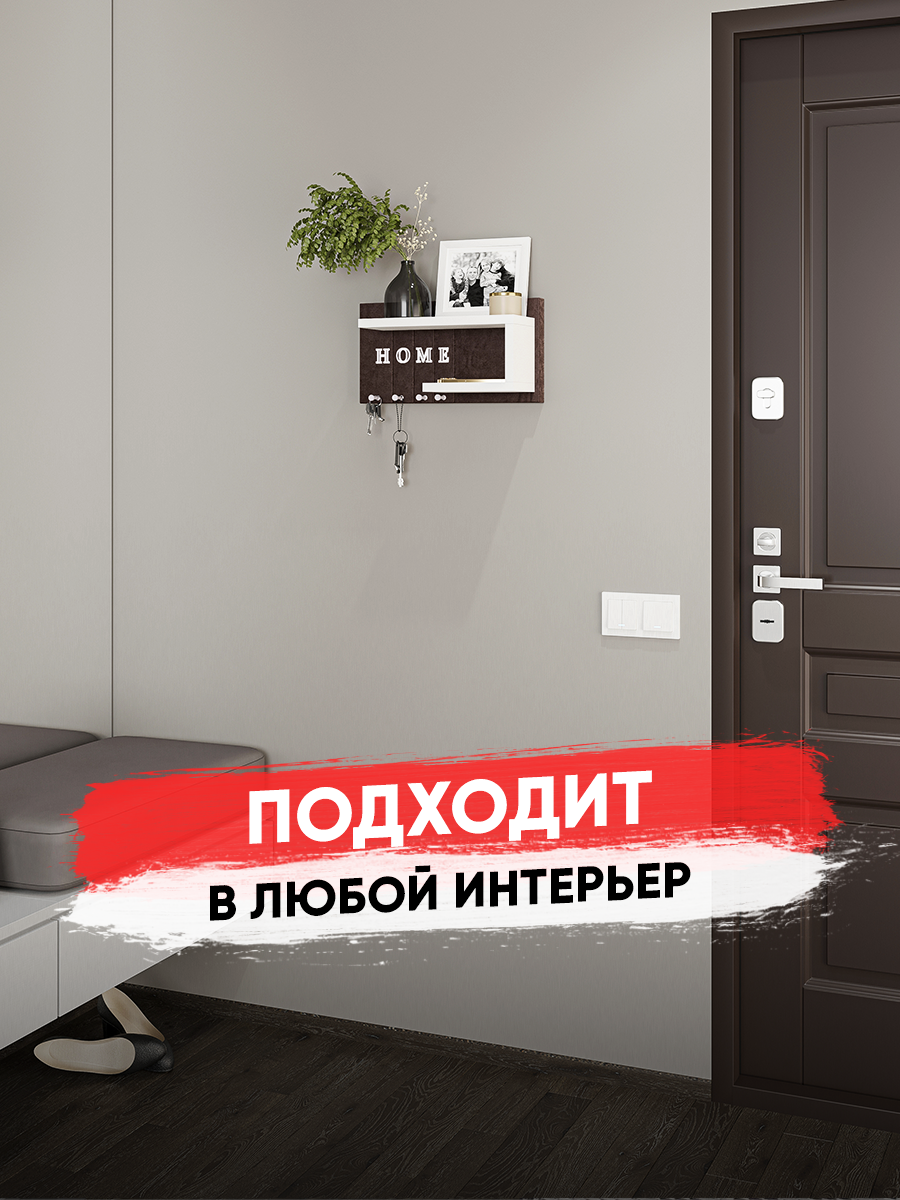 Ключница настенная Мягкая /цвет темно коричневый + полка белая/1шт интересное:
