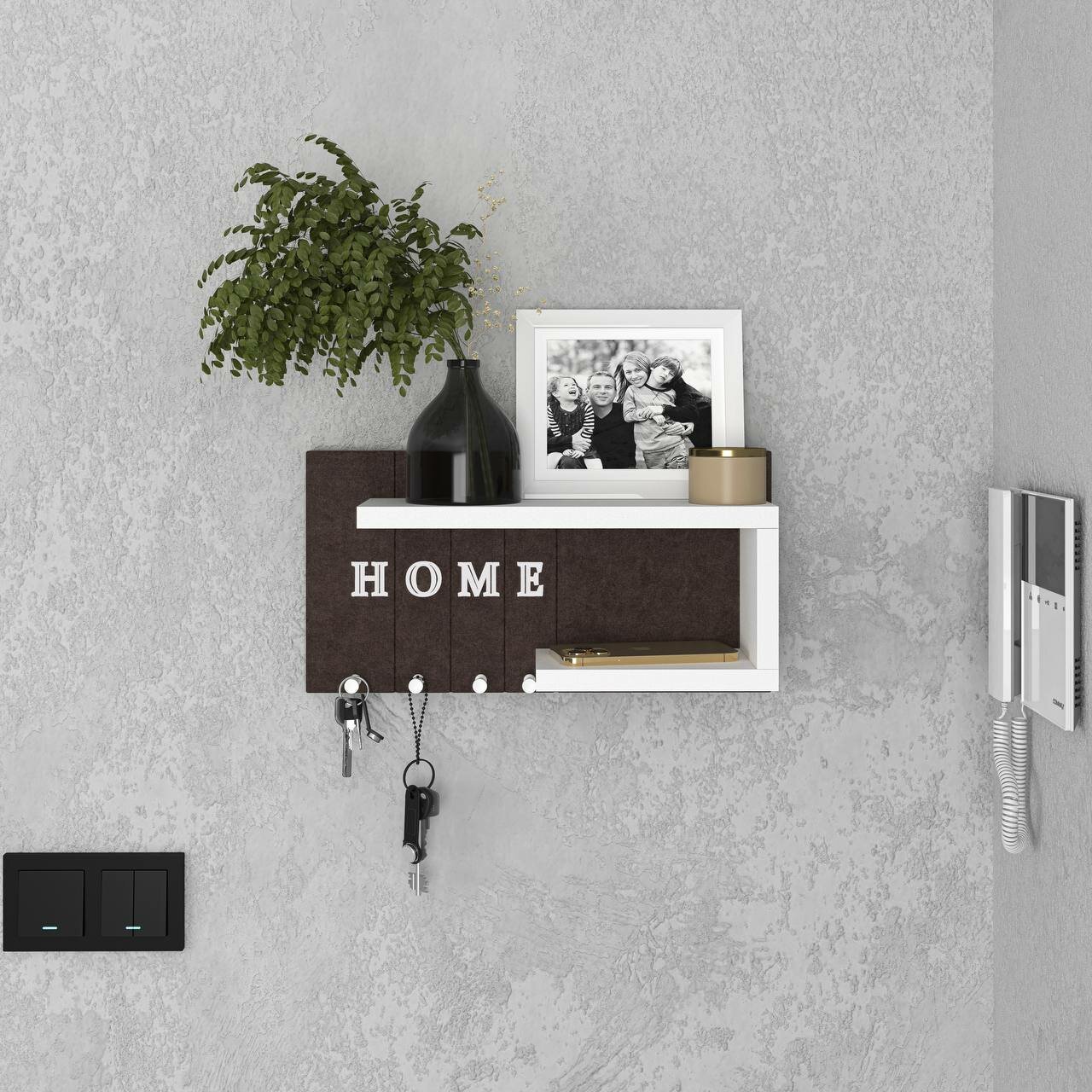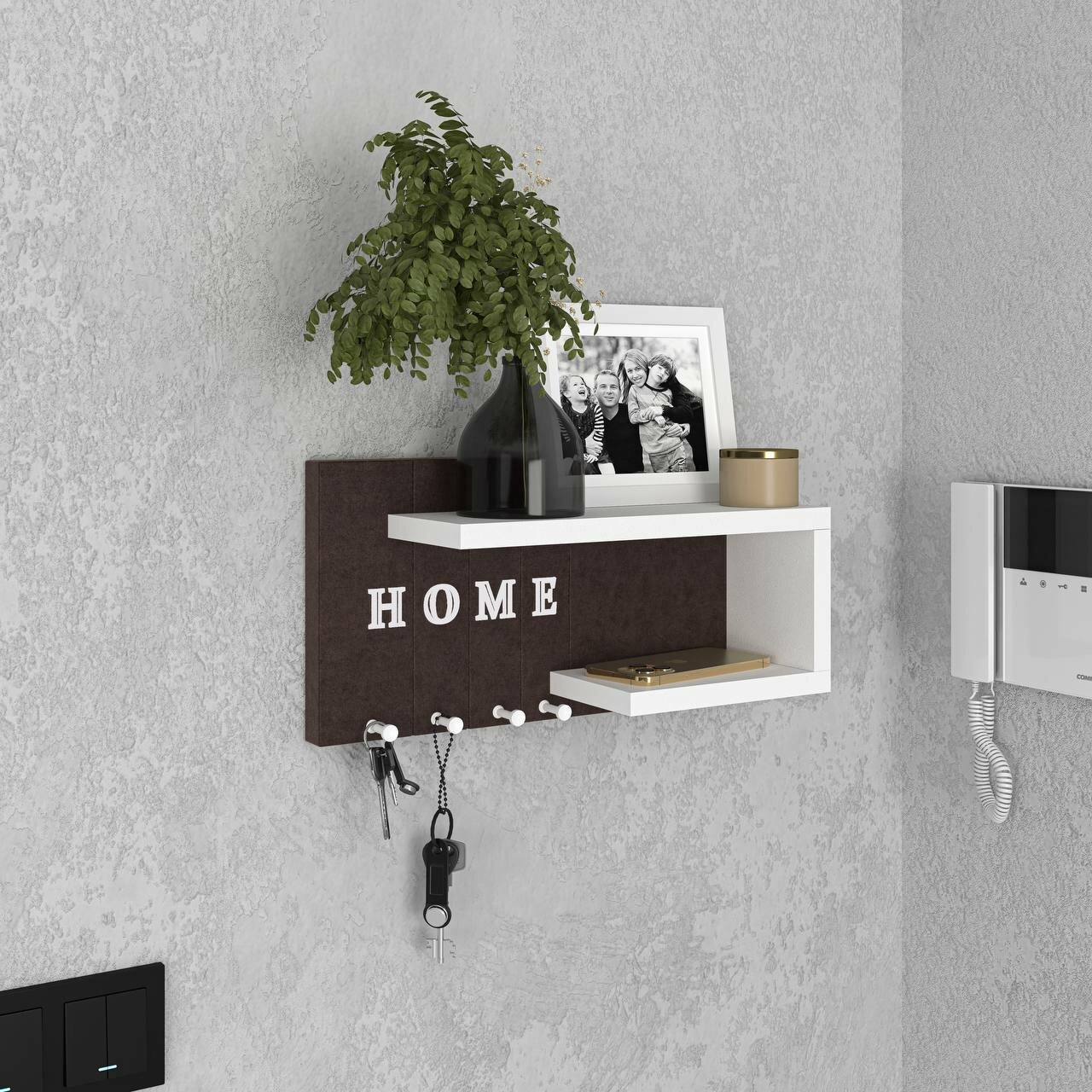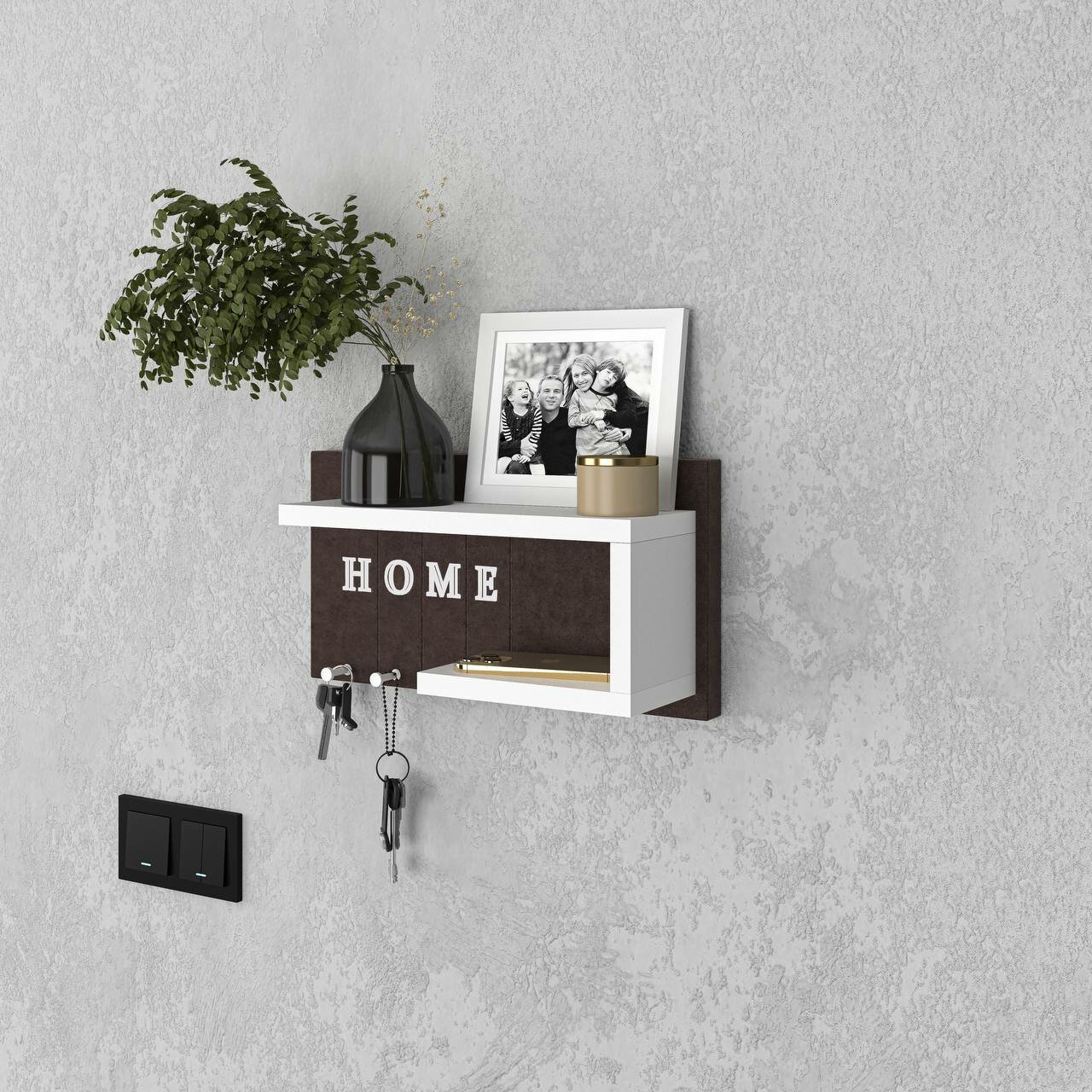 Ключница настенная Мягкая /цвет темно коричневый + полка белая/1шт интересное: