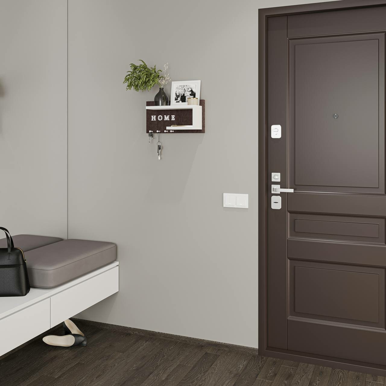 Ключница R.ROST KEY HOUSE, настенная, мягкая, с полкой, серая+белая, 1 шт