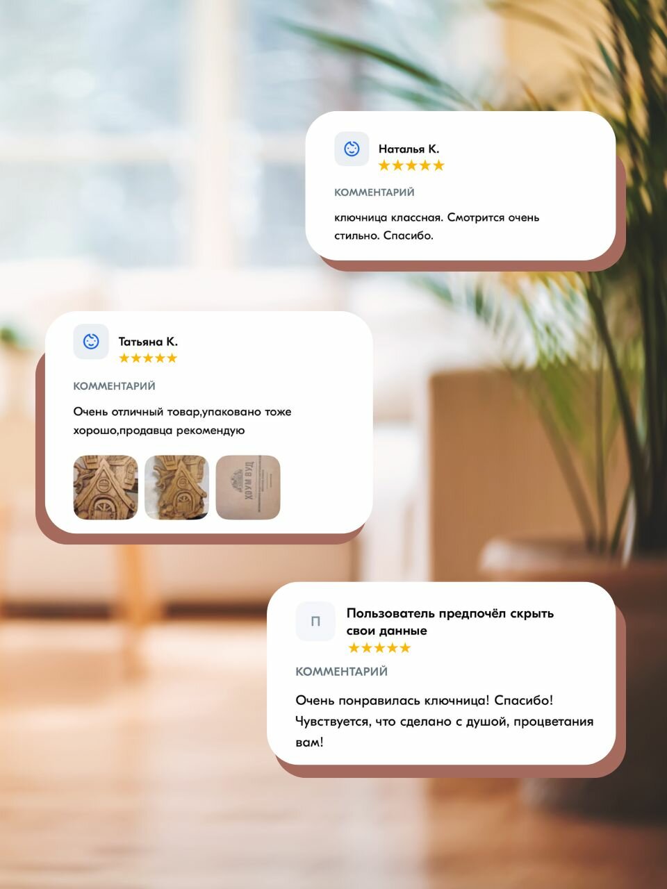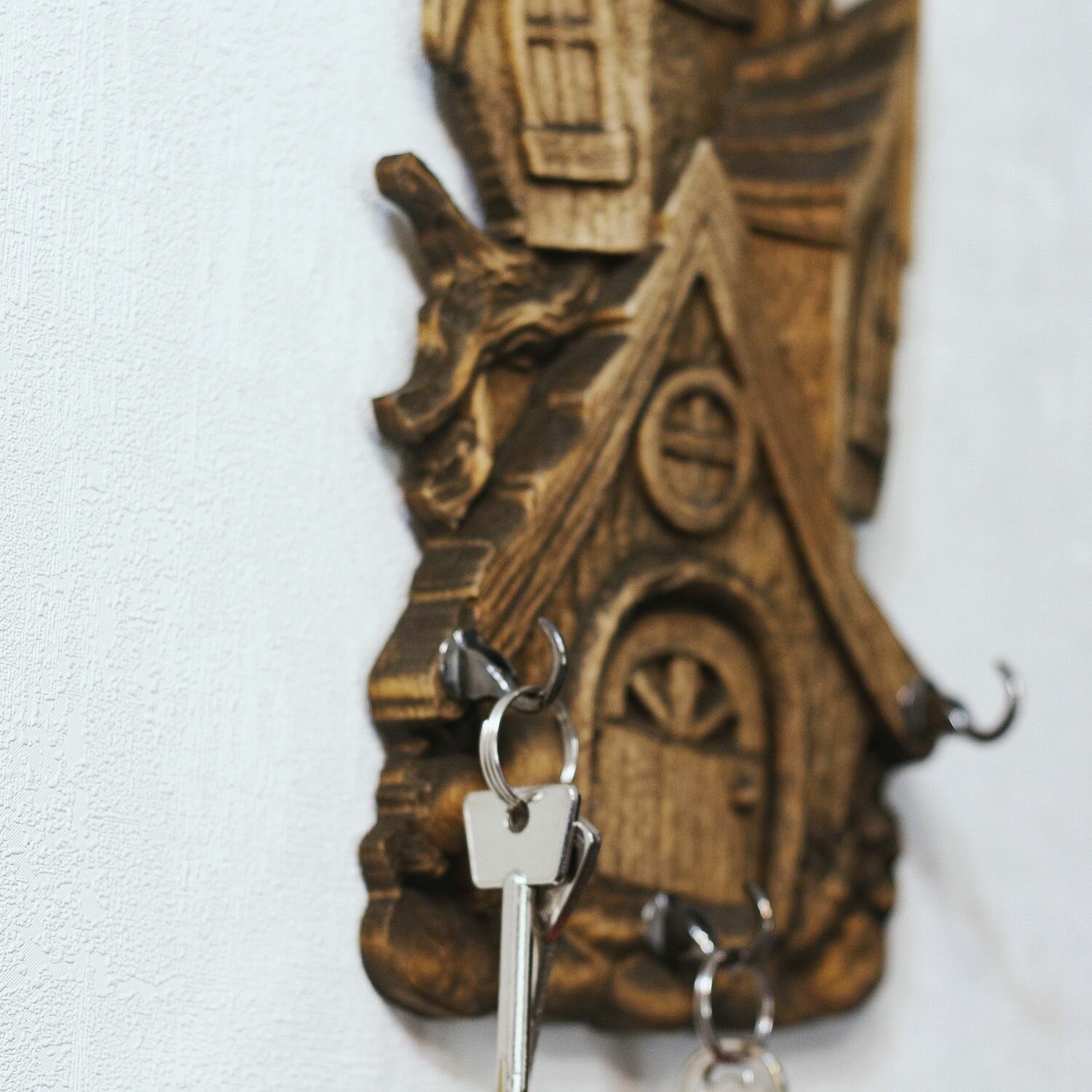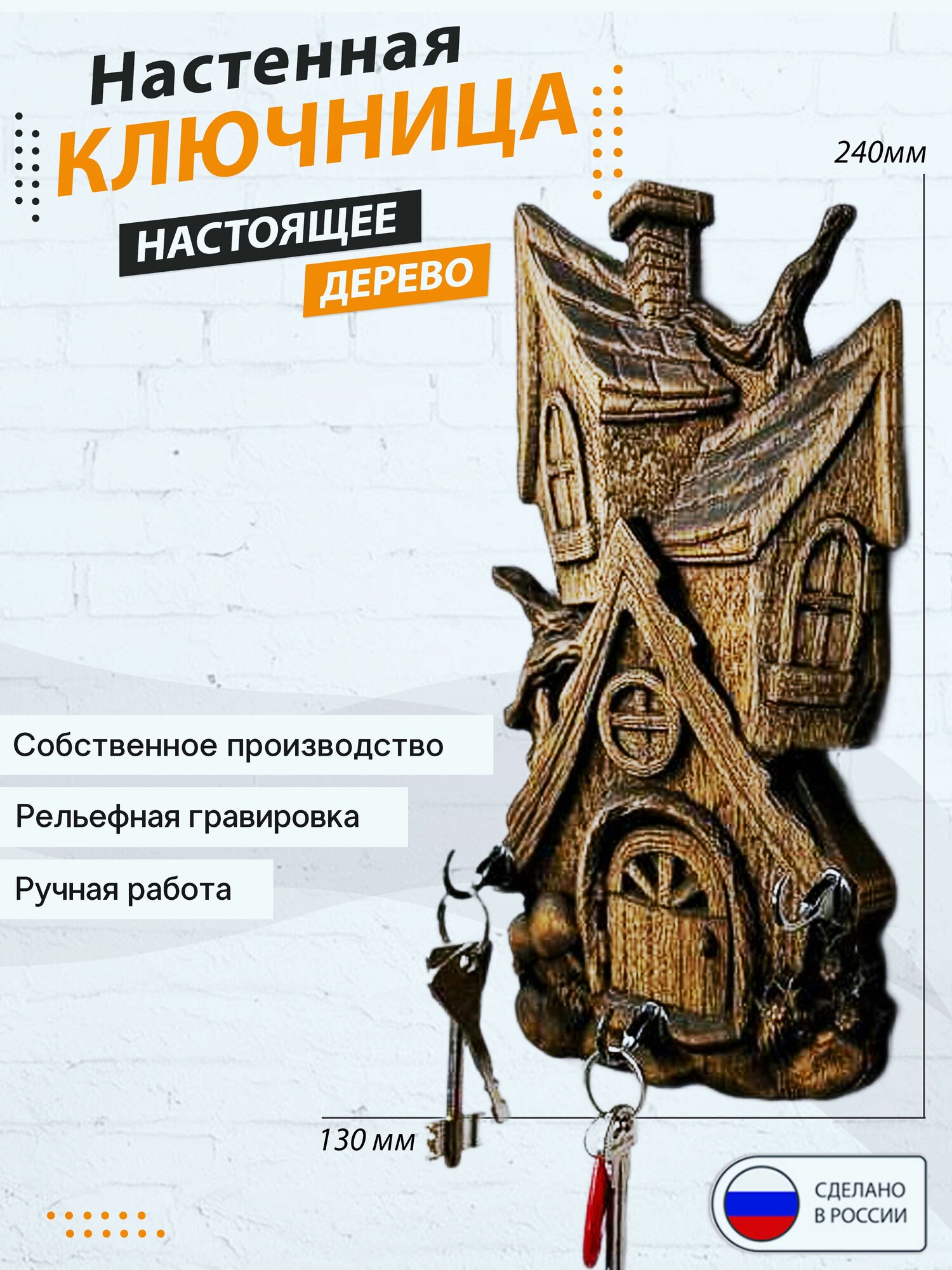 Ключница настенная деревянная ручной работы Теремок (натуральная береза) интересное: