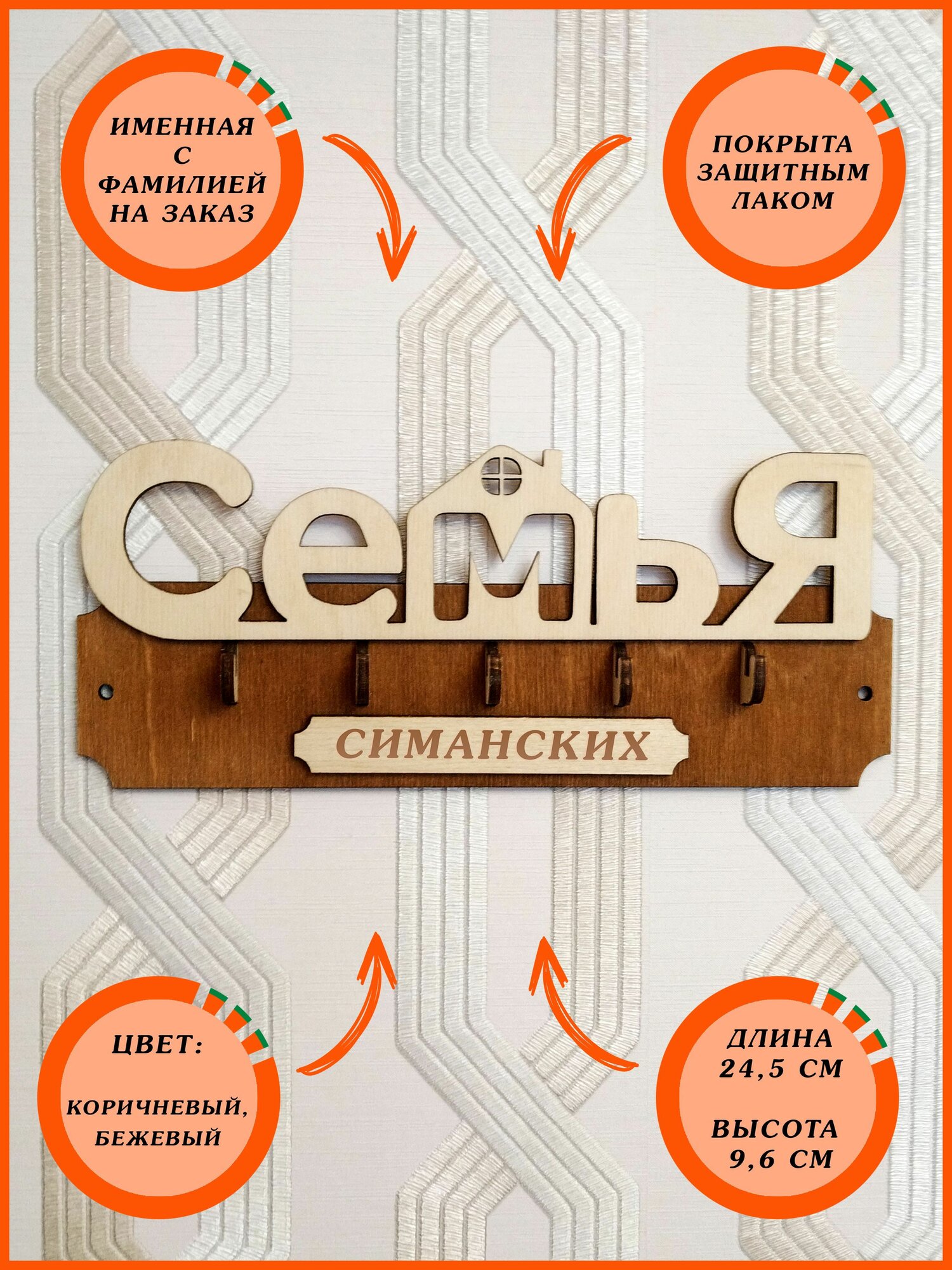 Ключница настенная именная с фамилией "Семья Симанских" в прихожую в дом или на новый год интересное: