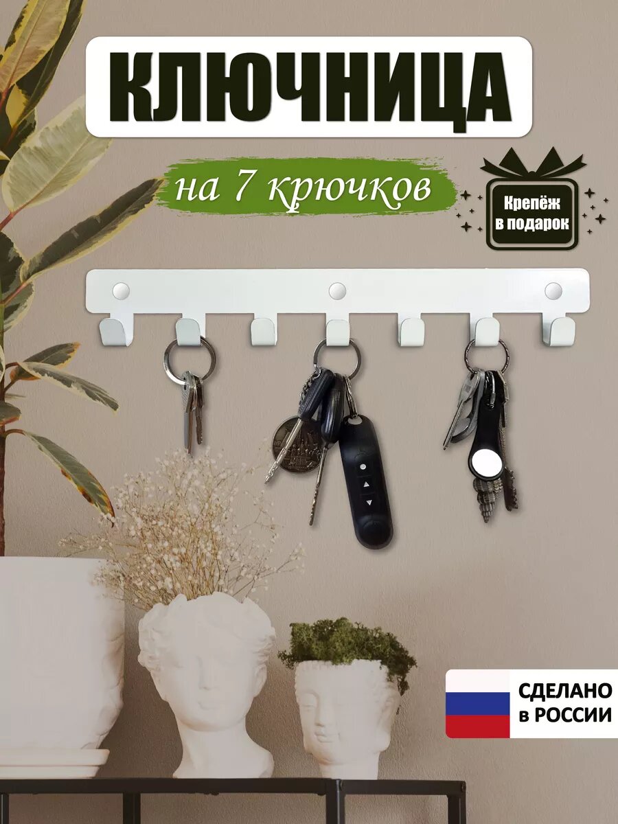 Ключница настенная , металл, белая, для дома, 7 крючков, максимальная нагрузка 14 кг